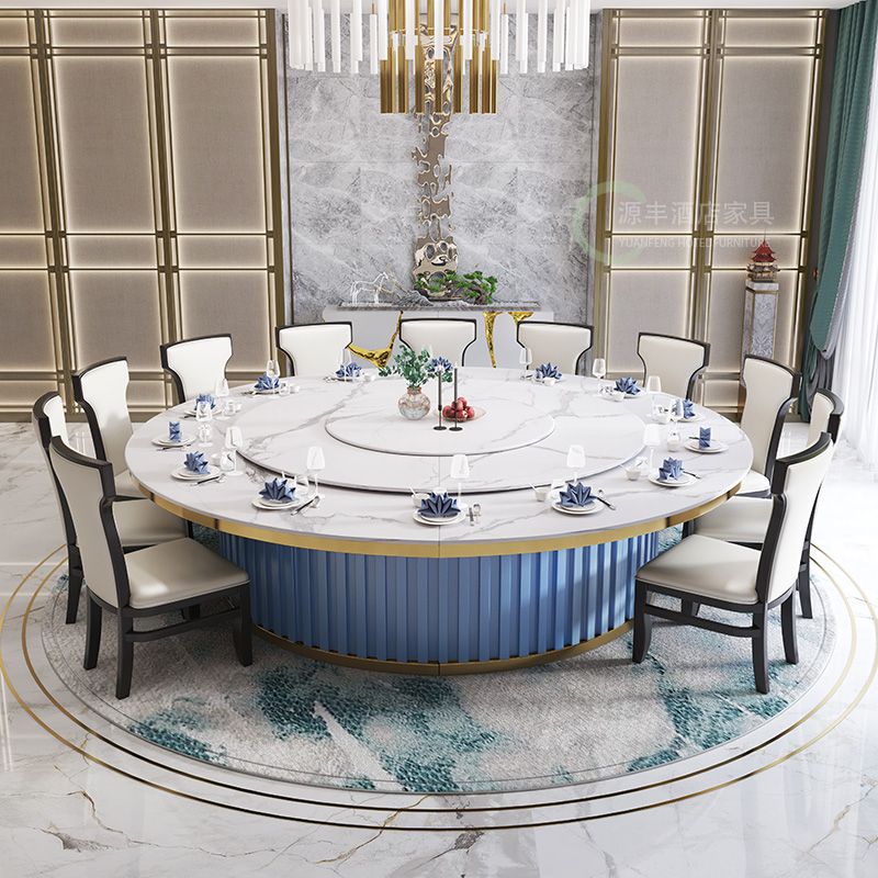 Bàn xoay điện khách sạn đá phiến bàn tròn lớn nhà hàng khách sạn 15 người 20 kết hợp bàn lẩu đá cẩm thạch và ghế