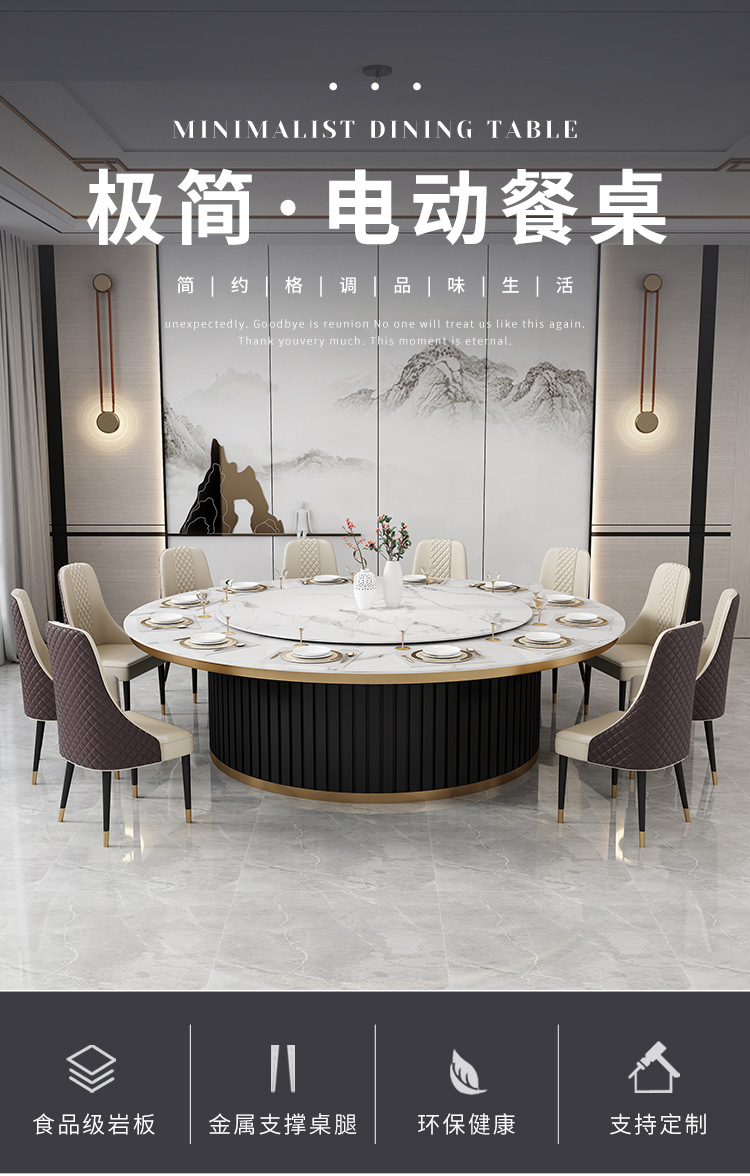 Bàn xoay điện khách sạn sang trọng nhẹ Bàn tròn lớn có bàn xoay bếp từ 15 người Bàn tròn khách sạn 20 người là sản phẩm nổi bật trong dòng bàn ăn nhập khẩu, thiết kế hiện đại và sang trọng, phù hợp với nhiều không gian nội thất cao cấp.