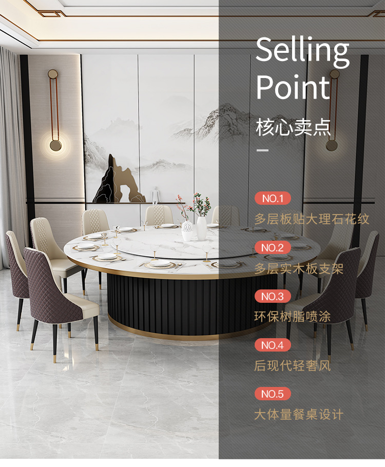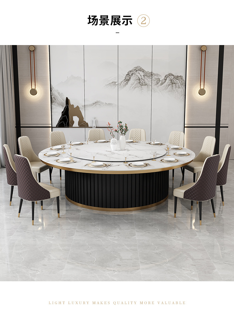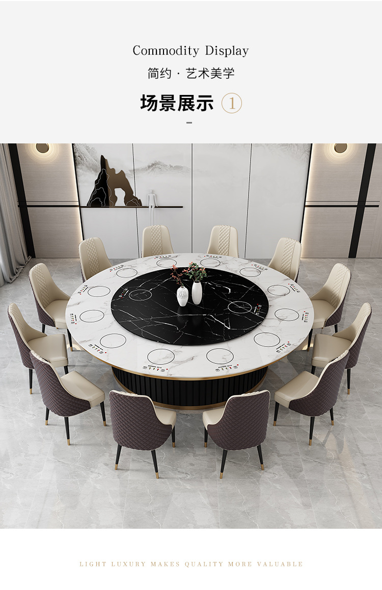 Bàn xoay điện khách sạn sang trọng nhẹ Bàn tròn lớn có bàn xoay bếp từ 15 người Bàn tròn khách sạn 20 người