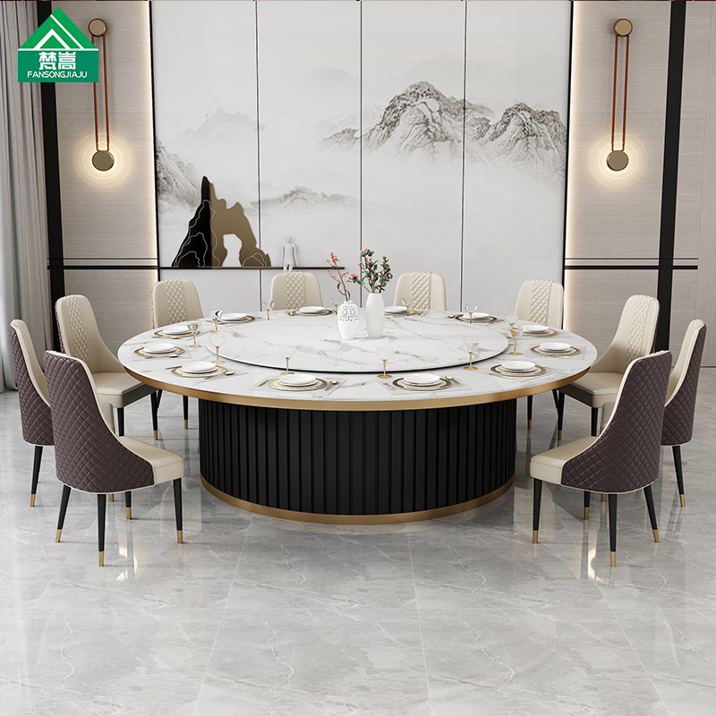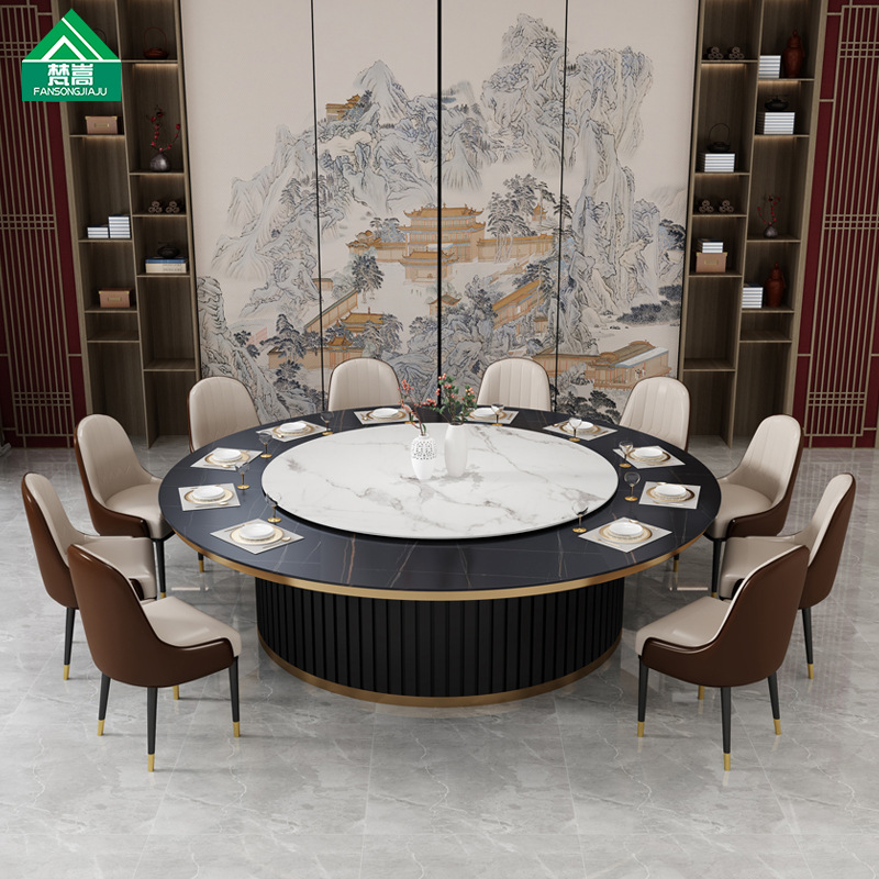 Bàn xoay điện khách sạn sang trọng nhẹ Bàn tròn lớn có bàn xoay bếp từ 15 người Bàn tròn khách sạn 20 người