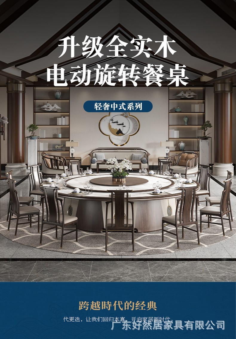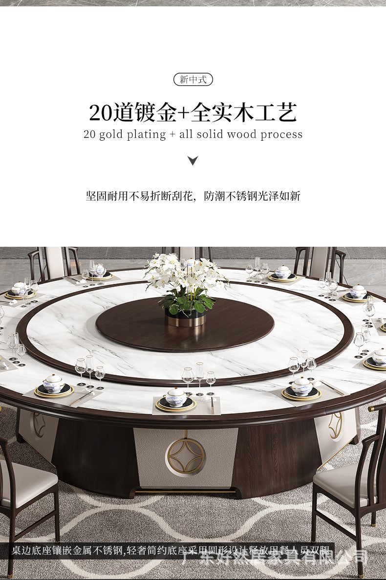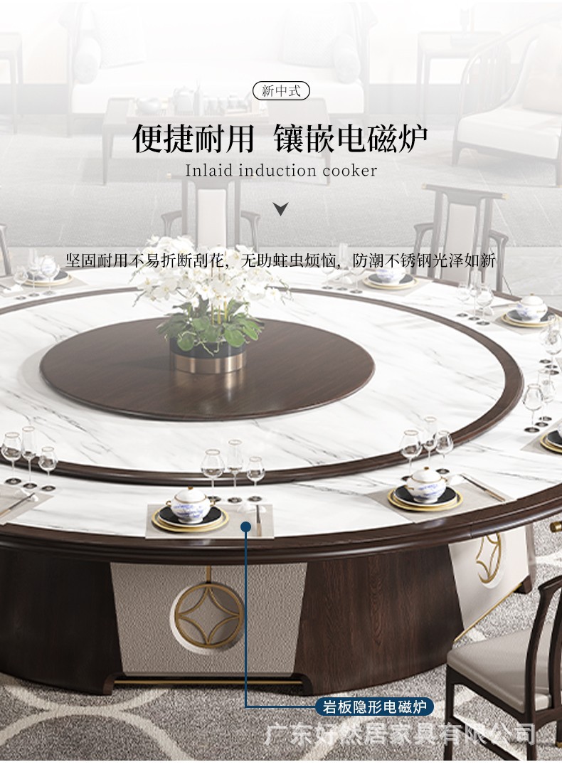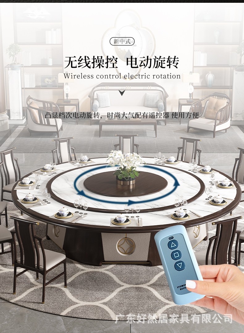 Bàn xoay điện kiểu Trung Quốc mới khách sạn bàn tròn lớn 20 người khách sạn bàn bàn gỗ câu lạc bộ nhà hàng đá tấm bàn lẩu – Bàn ăn nhập khẩu cao cấp
