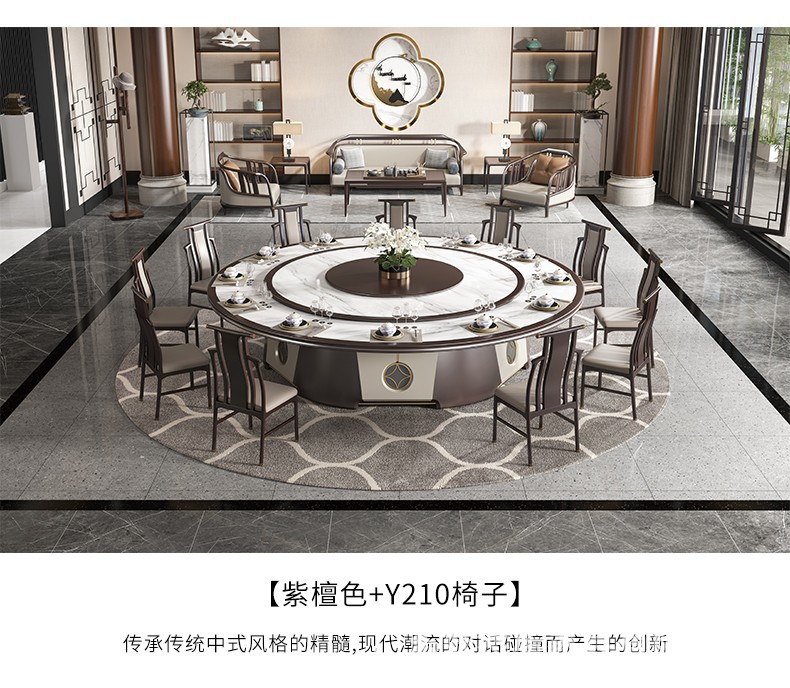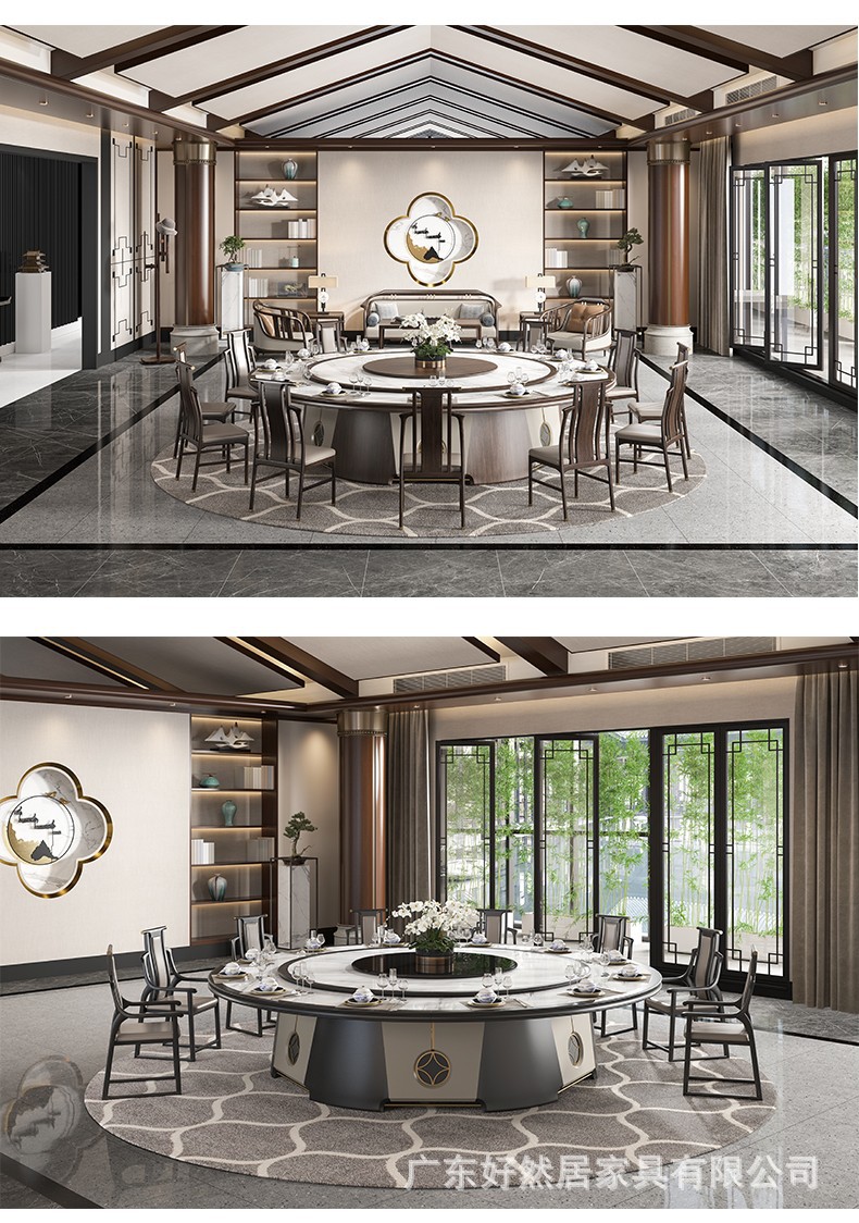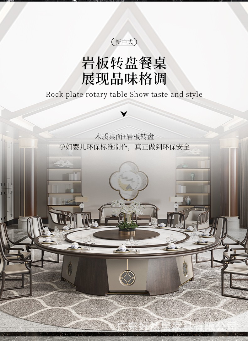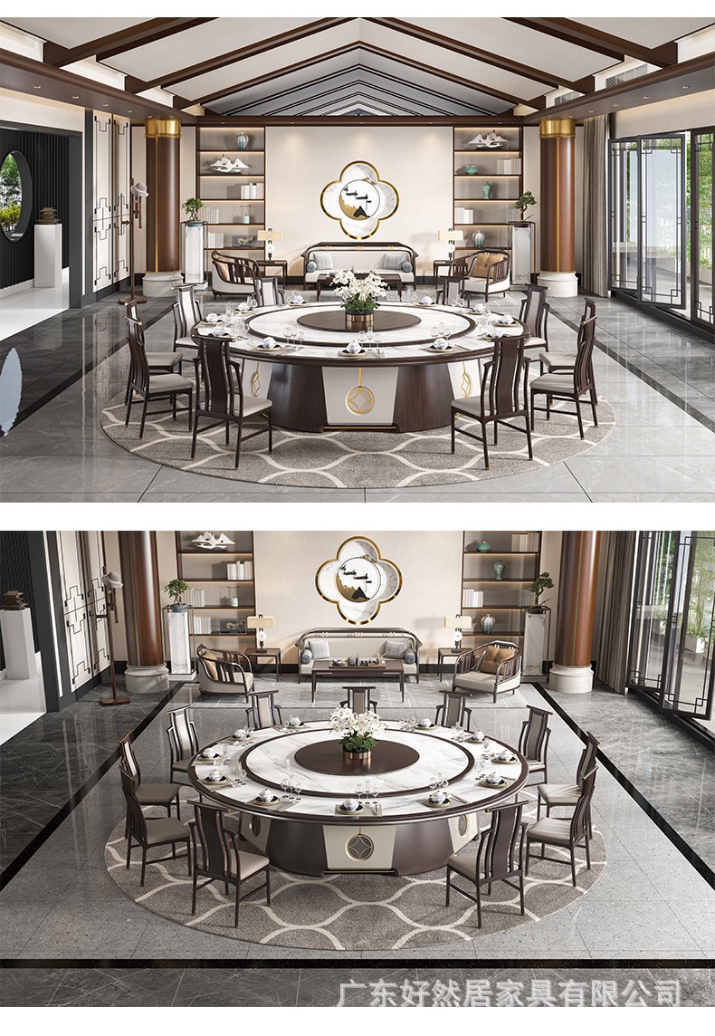 Bàn xoay điện kiểu Trung Quốc mới khách sạn bàn tròn lớn 20 người khách sạn bàn bàn gỗ câu lạc bộ nhà hàng đá tấm bàn lẩu – Bàn ăn nhập khẩu cao cấp
