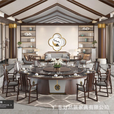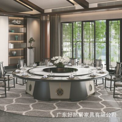 Bàn xoay điện kiểu Trung Quốc mới khách sạn bàn tròn lớn 20 người khách sạn bàn bàn gỗ câu lạc bộ nhà hàng đá tấm bàn lẩu là sản phẩm nổi bật trong dòng bàn ăn nhập khẩu, thiết kế hiện đại và sang trọng, phù hợp với nhiều không gian nội thất cao cấp.
