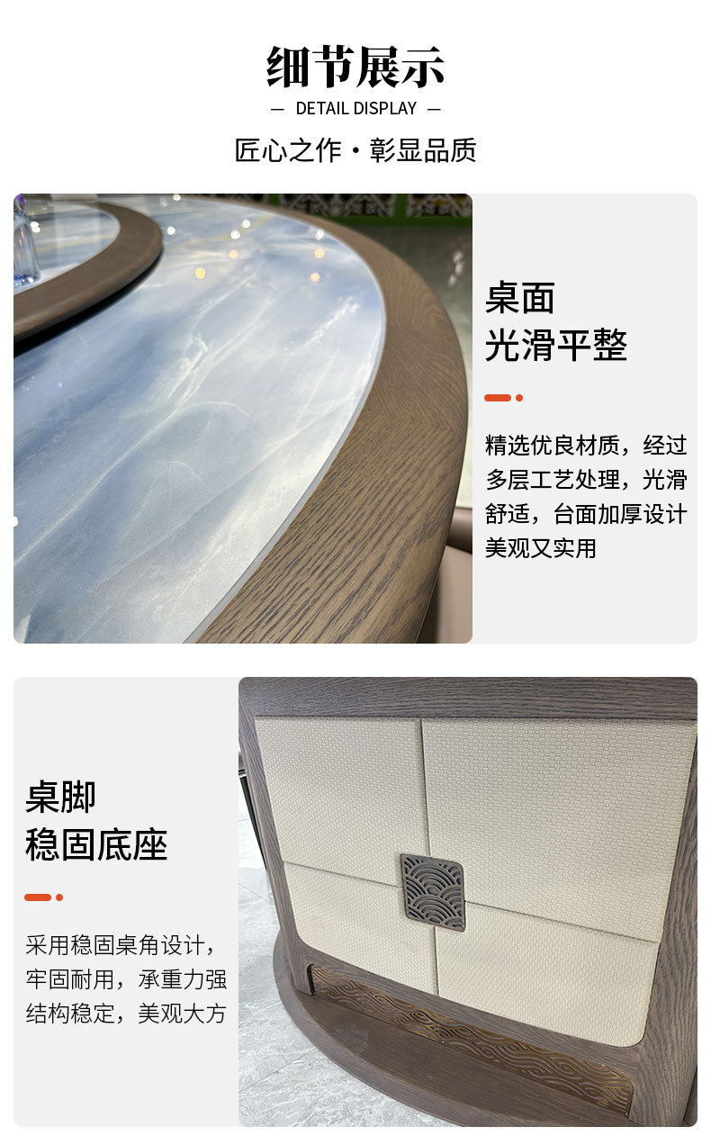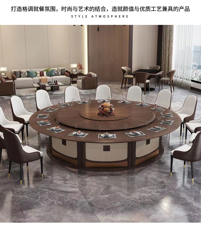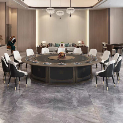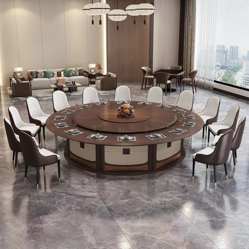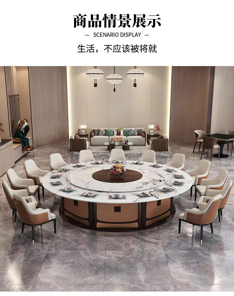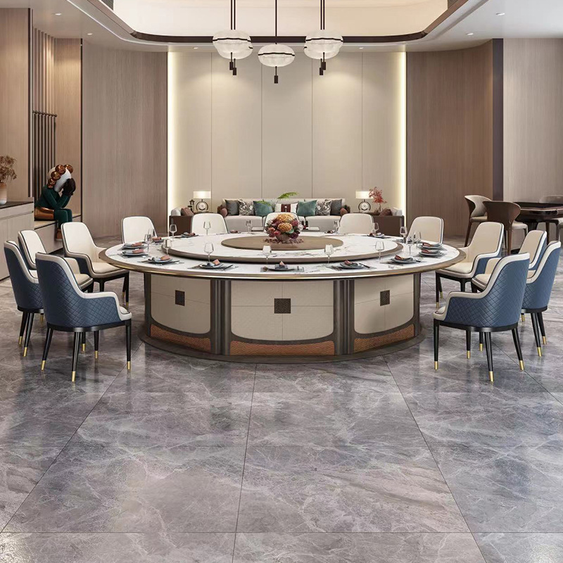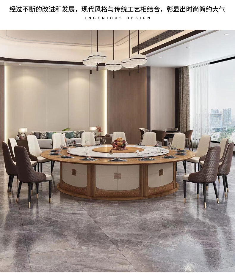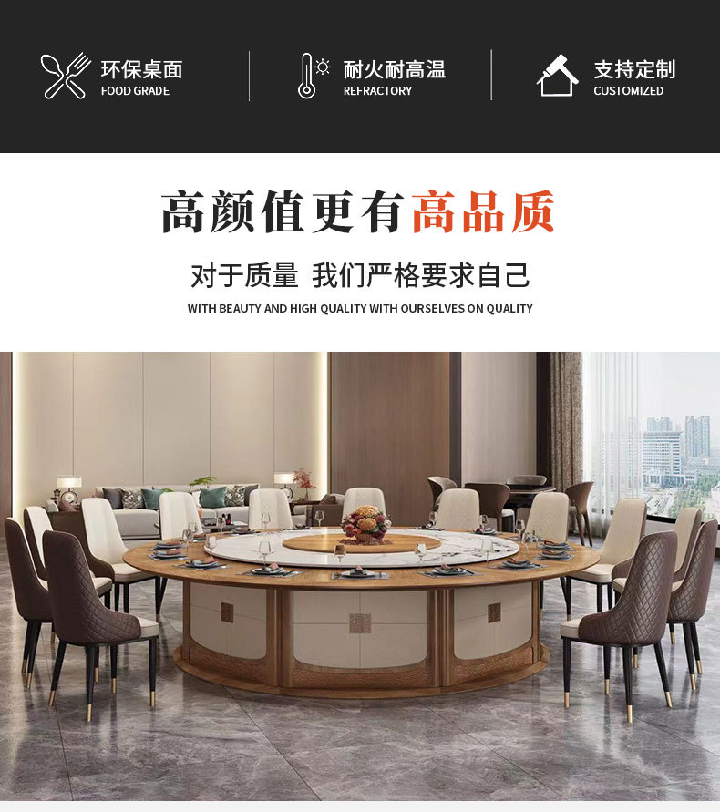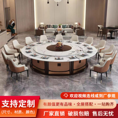 Bàn xoay tự động kiểu Trung Quốc mới bằng đá phiến bảng gỗ nguyên khối khách sạn bàn tròn lớn nhà hàng câu lạc bộ khách sạn vô hình bàn lẩu