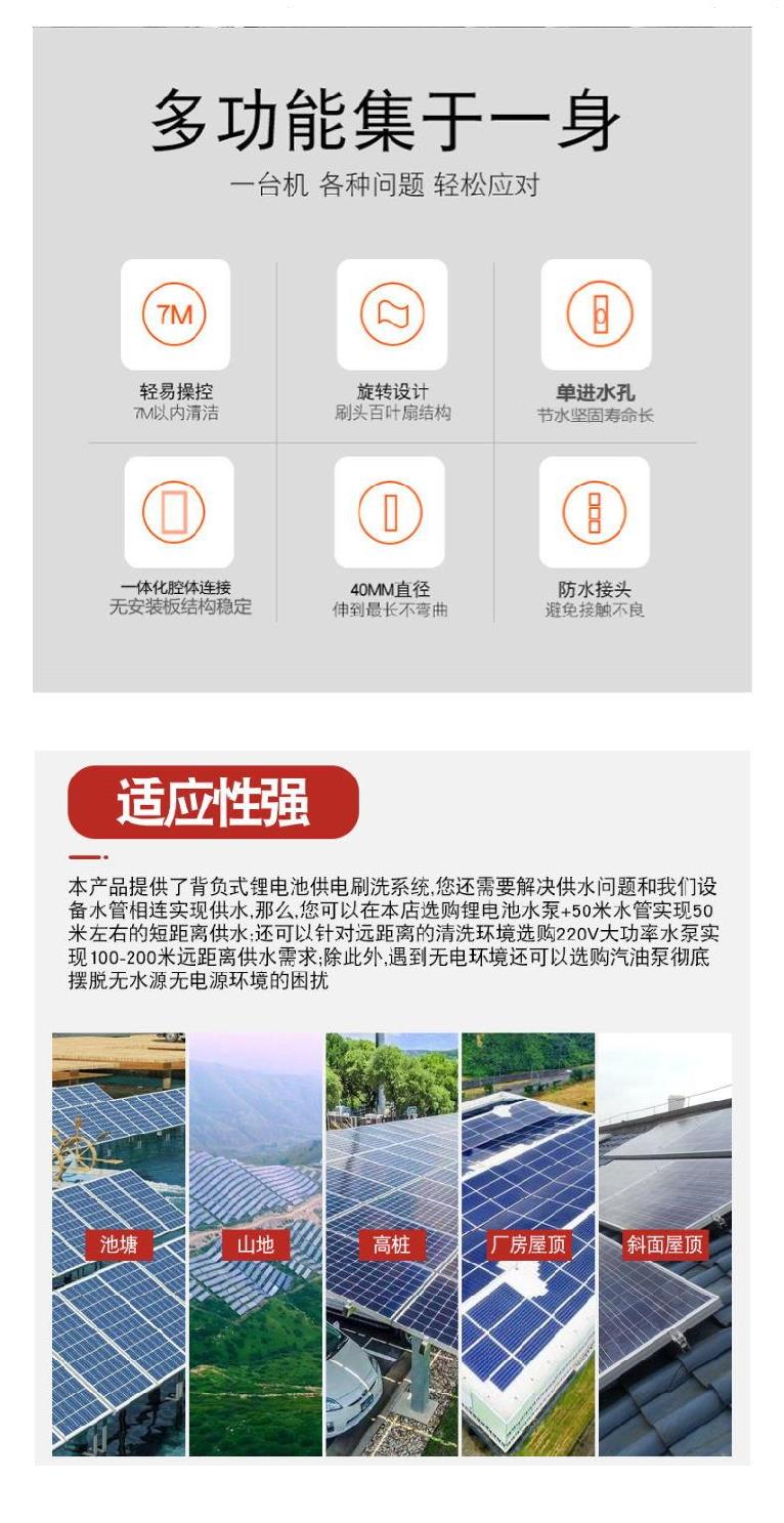 Bảng điều khiển quang điện năng lượng mặt trời làm sạch các thành phần robot phun nước đặc biệt làm sạch thiết bị làm sạch mái nhà kính bàn chải công cụ điện