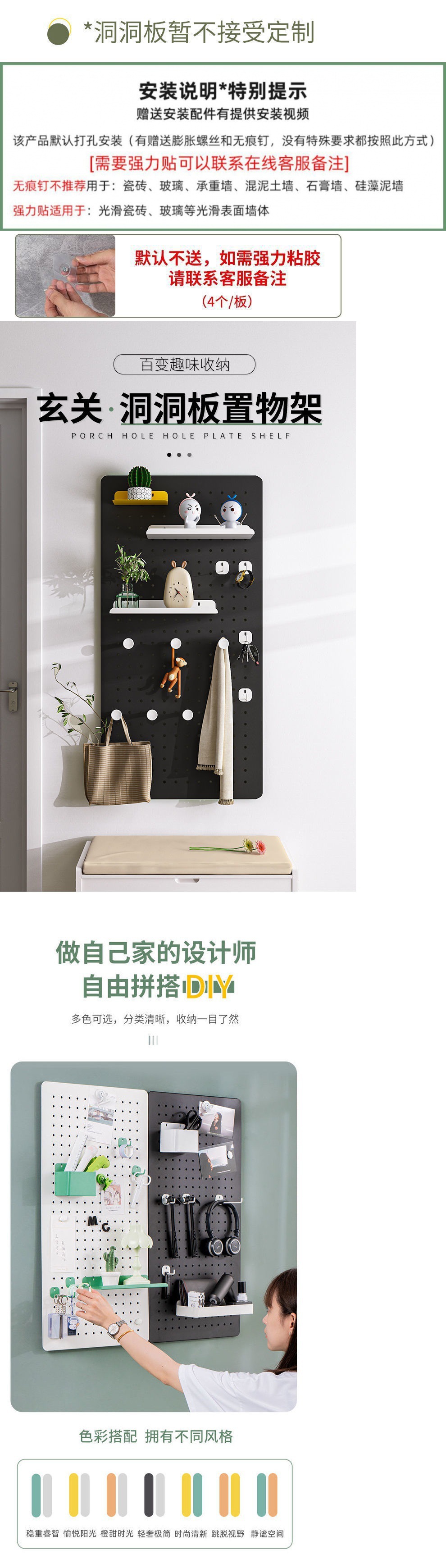 Bảng đục lỗ giá rẻ móc treo tường móc quần áo kệ treo tường hiên phòng ngủ nhà nhập cảnh quần áo