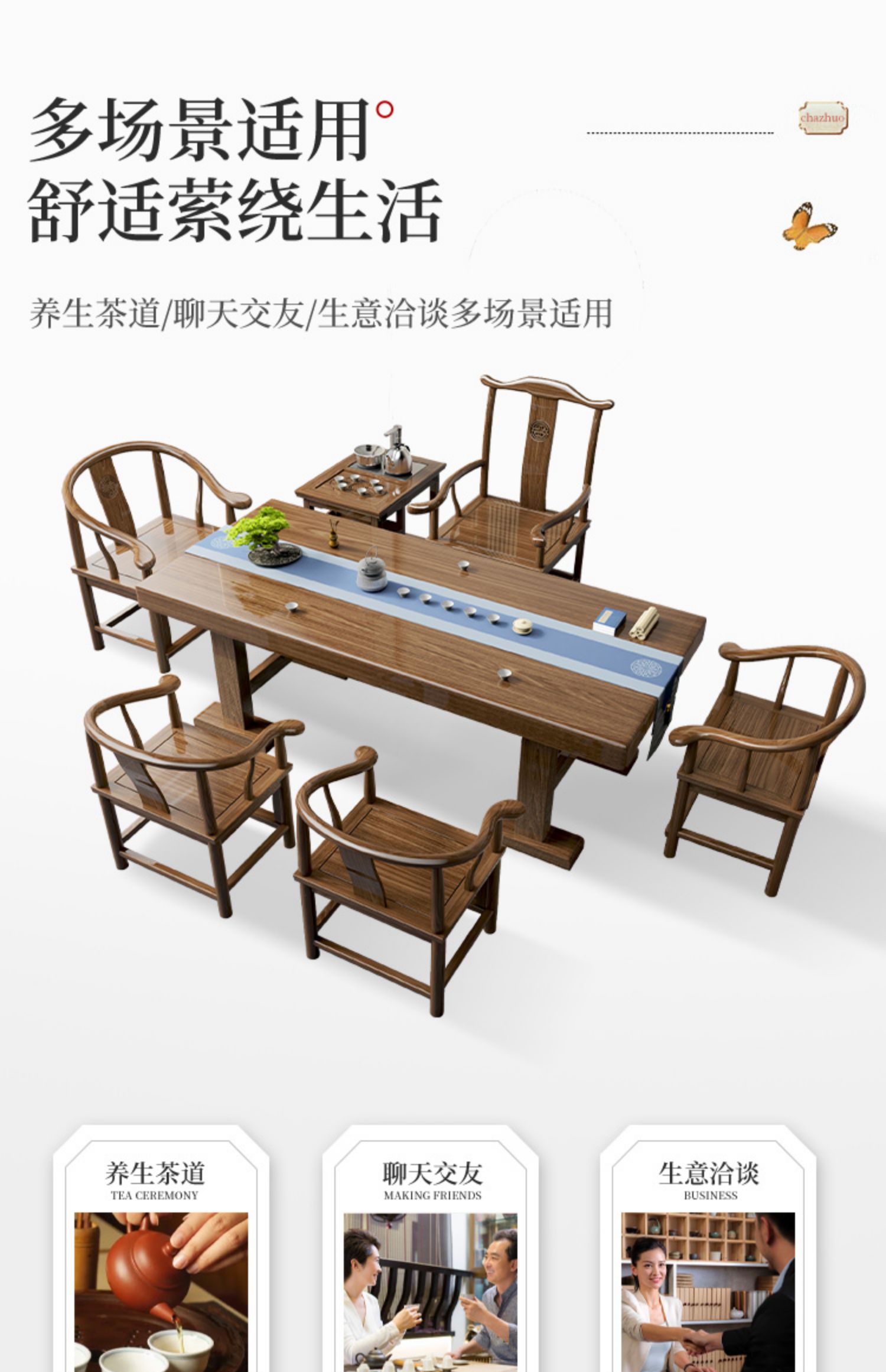 Bảng lớn bàn trà và ghế kết hợp gỗ rắn Trung Quốc mới Bàn trà Kung Fu Zen nhà văn phòng đăng nhập bàn trà bộ một