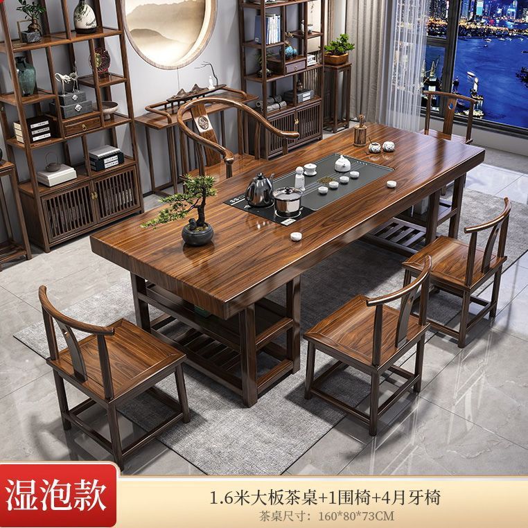 Bảng lớn kết hợp Bàn trà gỗ đặc và ghế kết hợp Bàn trà Kung Fu kiểu Trung Quốc mới đặt một văn phòng tại nhà Bàn pha trà Zen