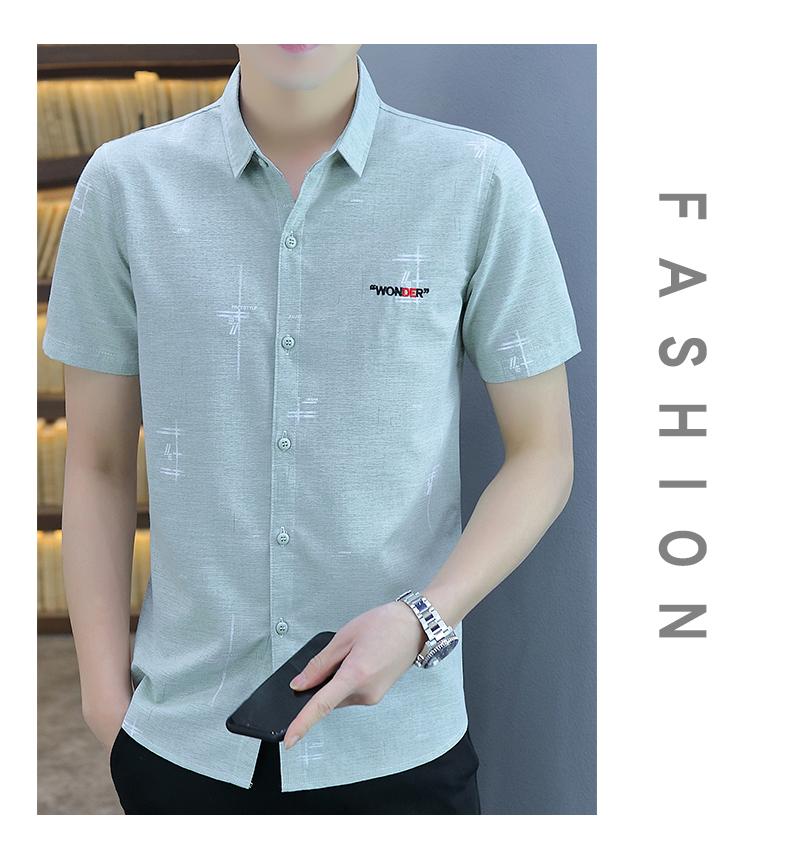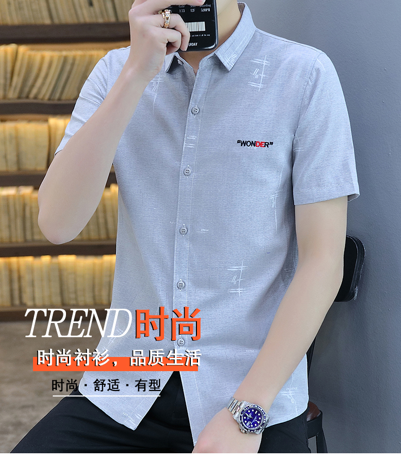Băng lụa áo sơ mi ngắn tay nam mùa hè mỏng phiên bản Hàn Quốc xu hướng áo sơ mi mỏng giản dị áo sơ mi inch tất cả các kết hợp trên cùng với cổ áo