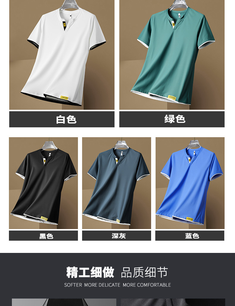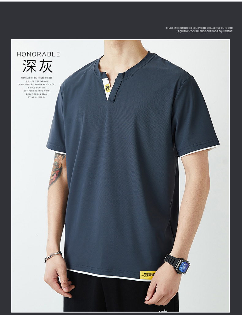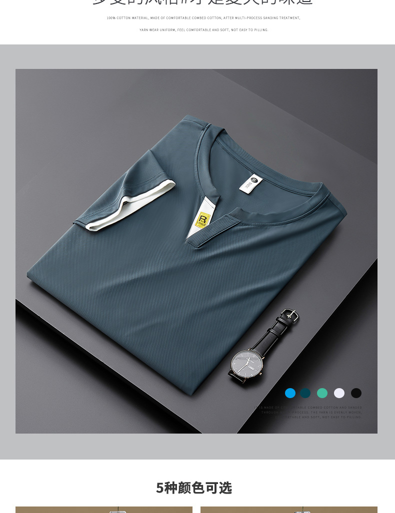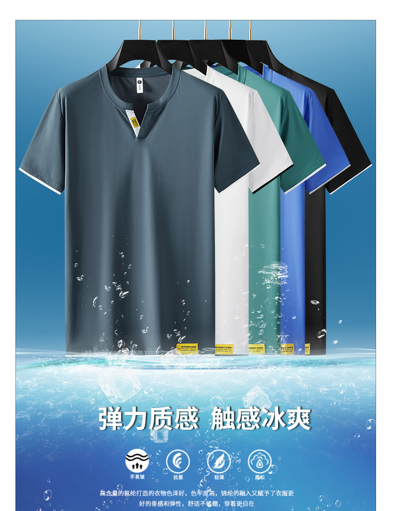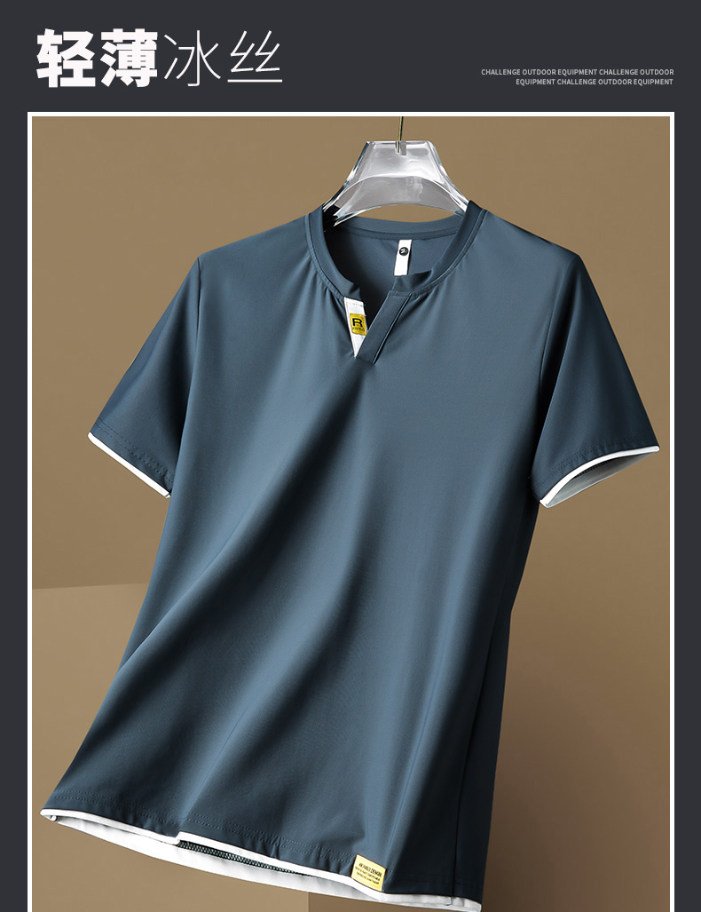 Băng lụa mỏng áo thun nam cổ chữ V 2022 mùa hè băng lạnh thoáng khí kinh doanh Áo sơ mi POLO dài tay ngắn tay thoải mái và đơn giản