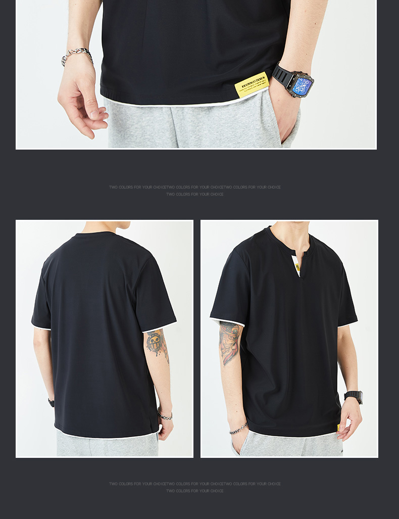 Băng lụa mỏng áo thun nam cổ chữ V 2022 mùa hè băng lạnh thoáng khí kinh doanh Áo sơ mi POLO dài tay ngắn tay thoải mái và đơn giản
