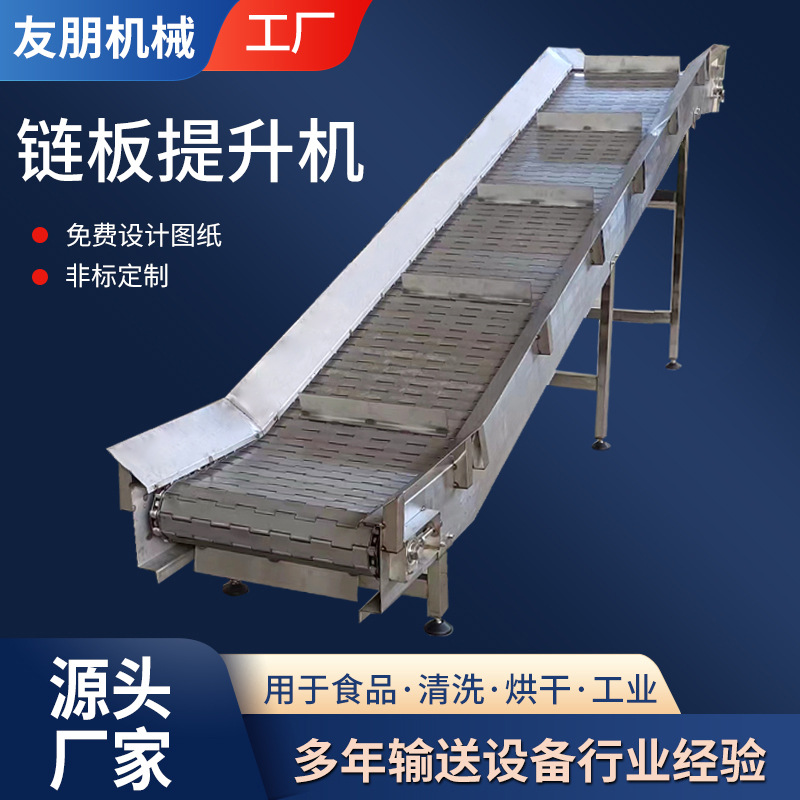 Băng tải xích tấm thép không gỉ 304 băng tải leo băng tải loại vách ngăn xích tấm Palăng dây chuyền lắp ráp băng tải xích tấm