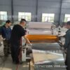 根据客户需求加工定做,正常标准1300宽度,热胶冷胶都可定做,热胶长23米宽1,5米。高2米。工作台可根据客户需求定做。
