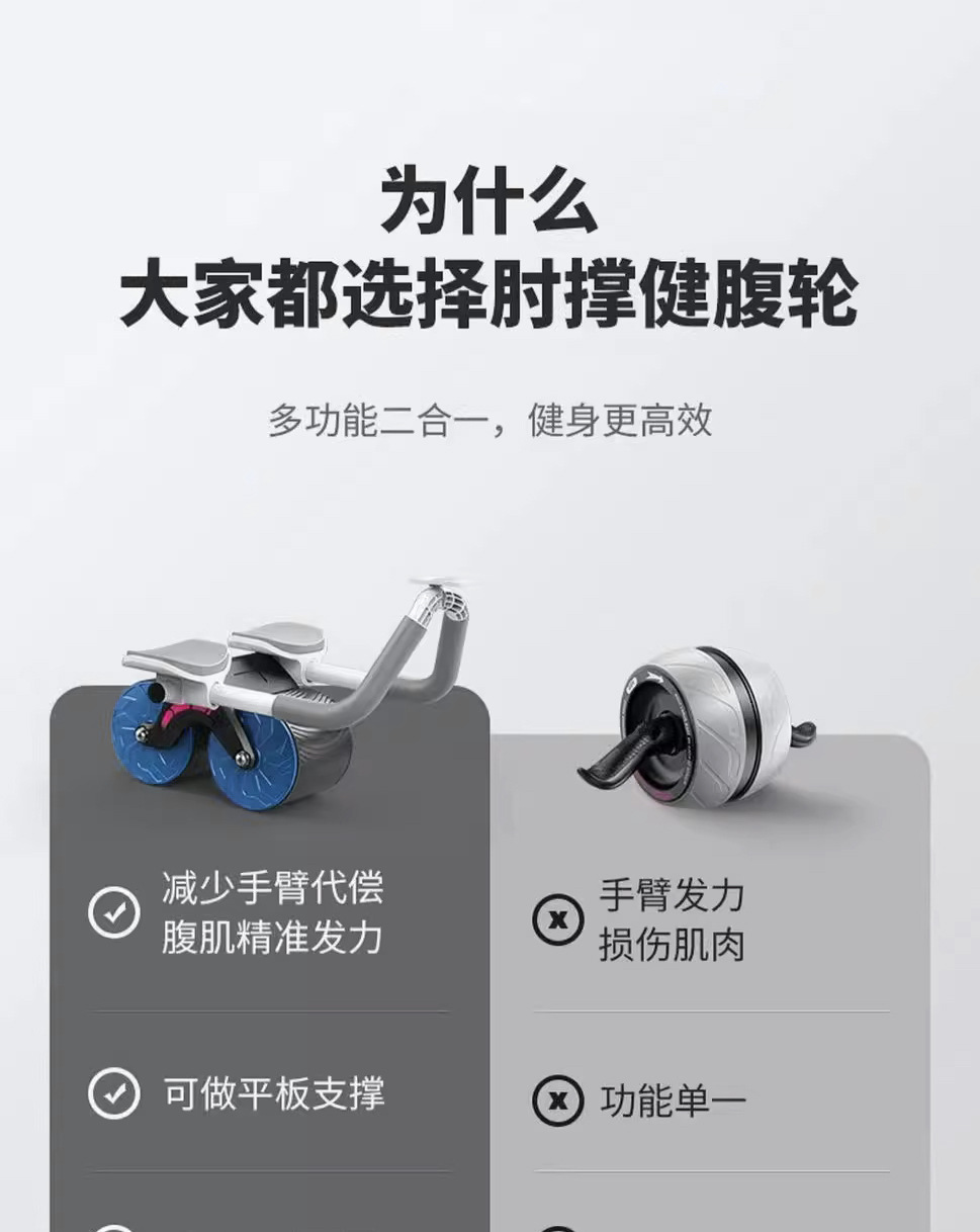 Bánh xe tập bụng Tự động phục hồi cơ bụng Hỗ trợ khuỷu tay Bánh xe cơ bụng Con lăn tạo tác bụng mỏng Thiết bị tập thể dục thể thao tại nhà