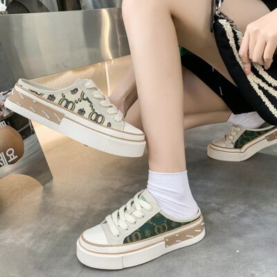 Bao Đầu Bán Dép Nữ Mùa Hè 2023 Mới Giày Lười Đế Dày Phối Màu Giày Vải Bán Buôn