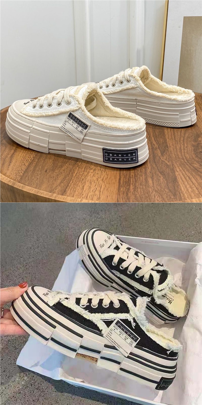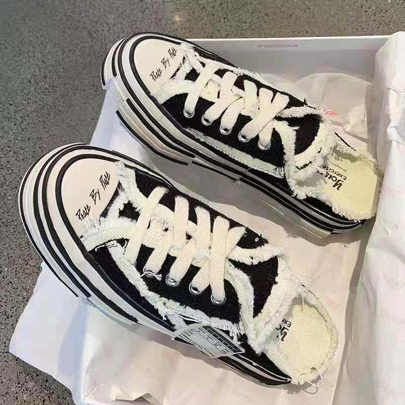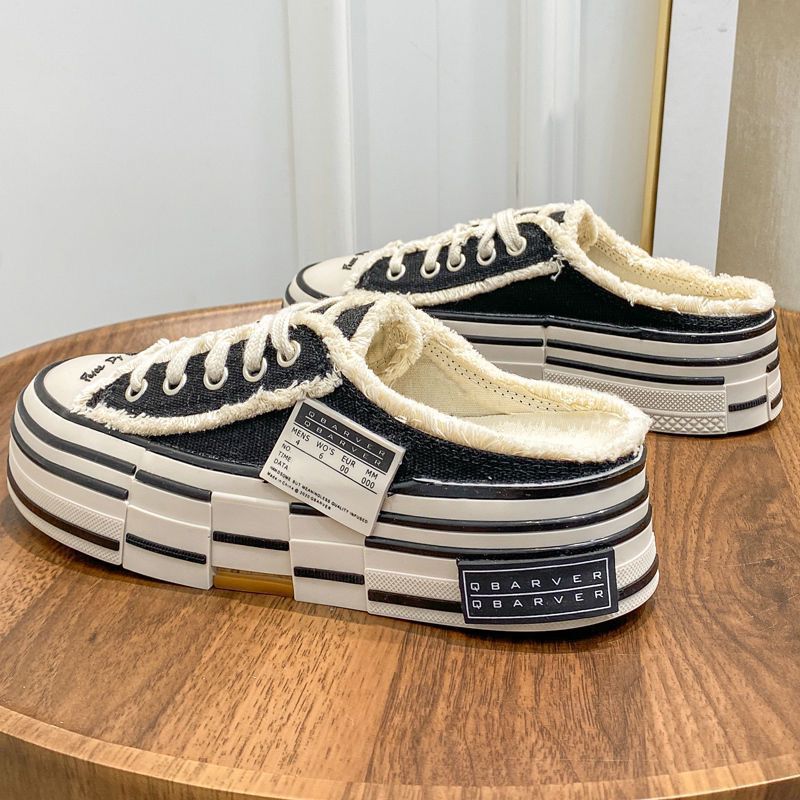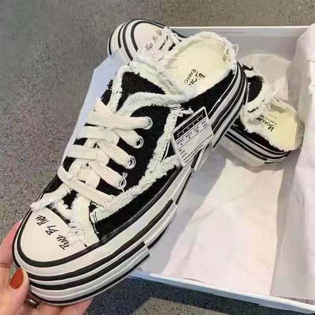 Bao Đầu giày nữ nửa thông thời trang áo khoác ngoài dép đế dày bằng vải bước vào cứt cảm giác giày ăn mày nửa khay sinh viên giày trắng hợp thời trang