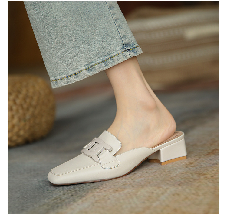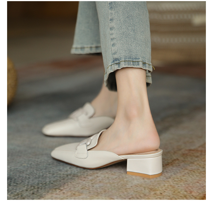 Bao Đầu nửa dép lê Muller thời trang nữ áo khoác ngoài lười biếng mũi vuông xăng đan gót dày và dép da Pháp mùa hè