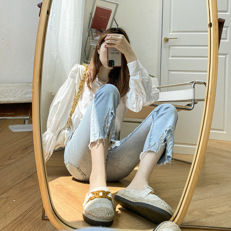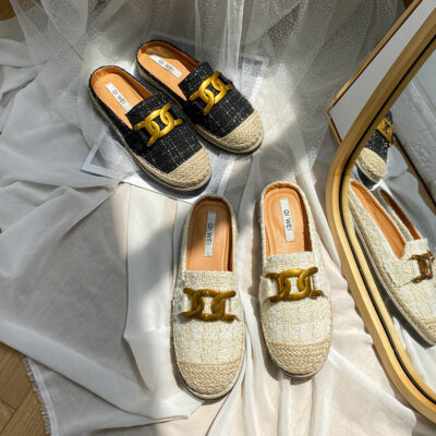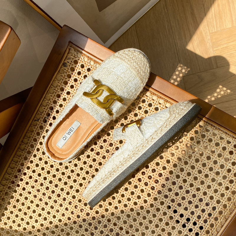 Bao Đầu nửa dép nữ mùa hè 2023 vải lanh dệt rơm mới giày lười giày lười nhỏ thơm của ngư dân