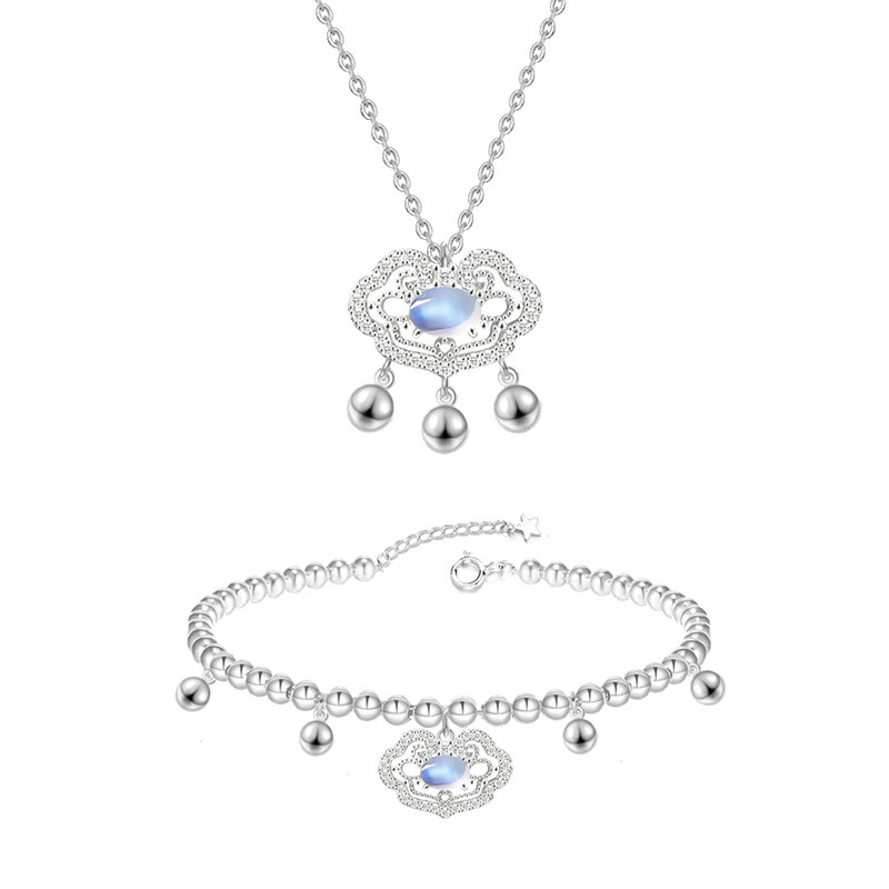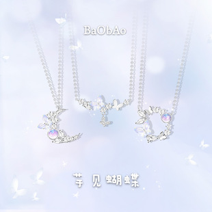 BaObAo thiết kế ban đầu bạc 925 nhẹ nhàng chuông moonstone khóa an toàn túi vòng cổ hốc ins vòng tay nữ