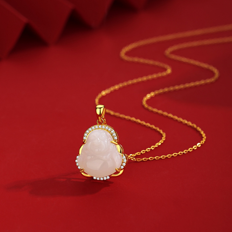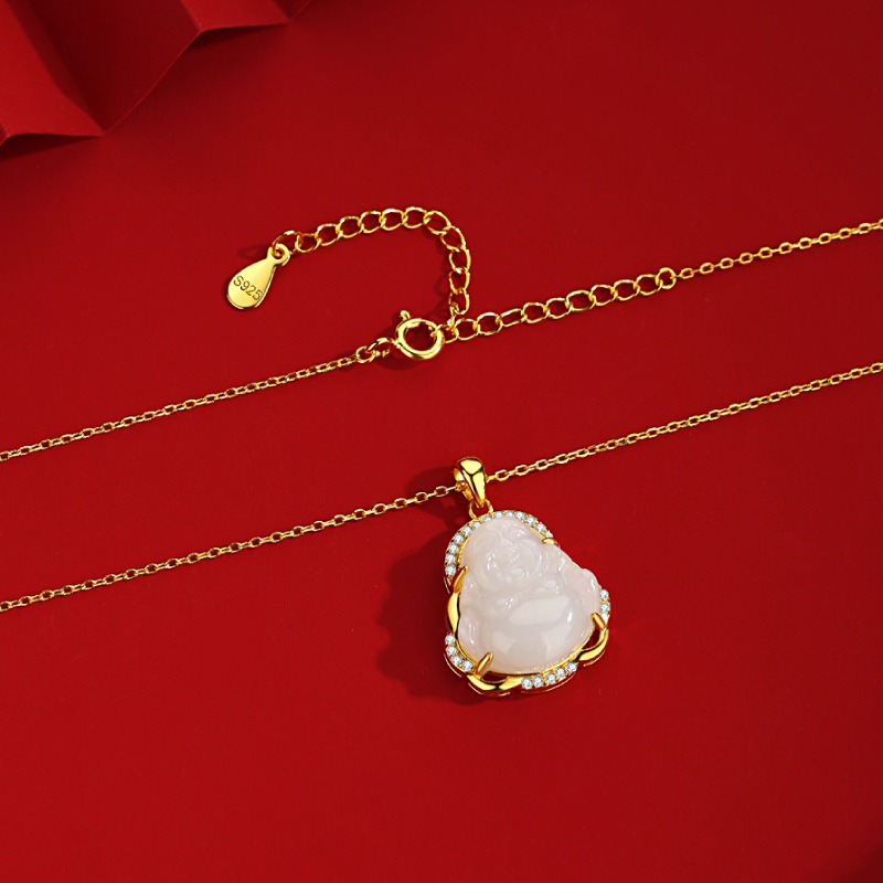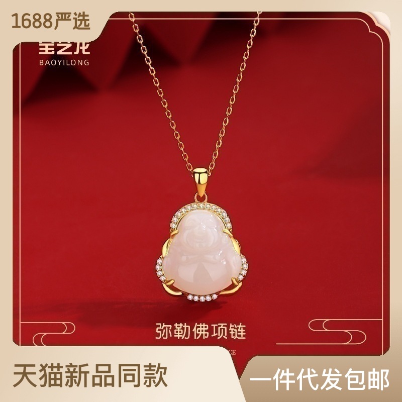 Baoyilong S925 Bạc Quốc Triều Tự Nhiên Hetian Ngọc Phật Di Lặc Vòng Cổ Nữ Xương Đòn Dây Chuyền Trang Sức Mặt Dây Chuyền Trang Sức