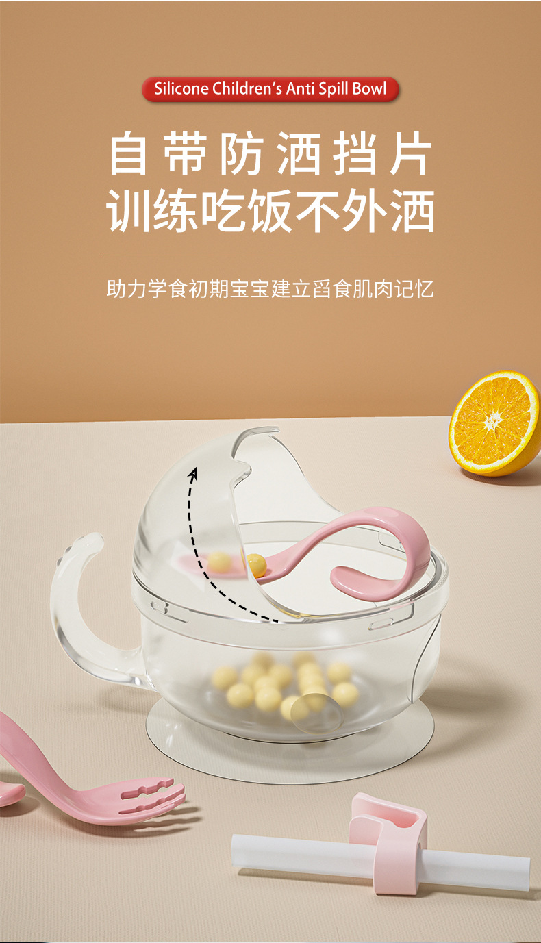 Bát ăn bổ sung cho bé dụng cụ ăn dặm bổ sung cho trẻ Bát chống tràn trẻ em Bát có thể tháo rời có cốc hút Bộ đồ ăn bát thìa
