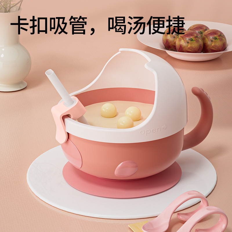 Bát ăn bổ sung cho bé dụng cụ ăn dặm bổ sung cho trẻ Bát chống tràn trẻ em Bát có thể tháo rời có cốc hút Bộ đồ ăn bát thìa