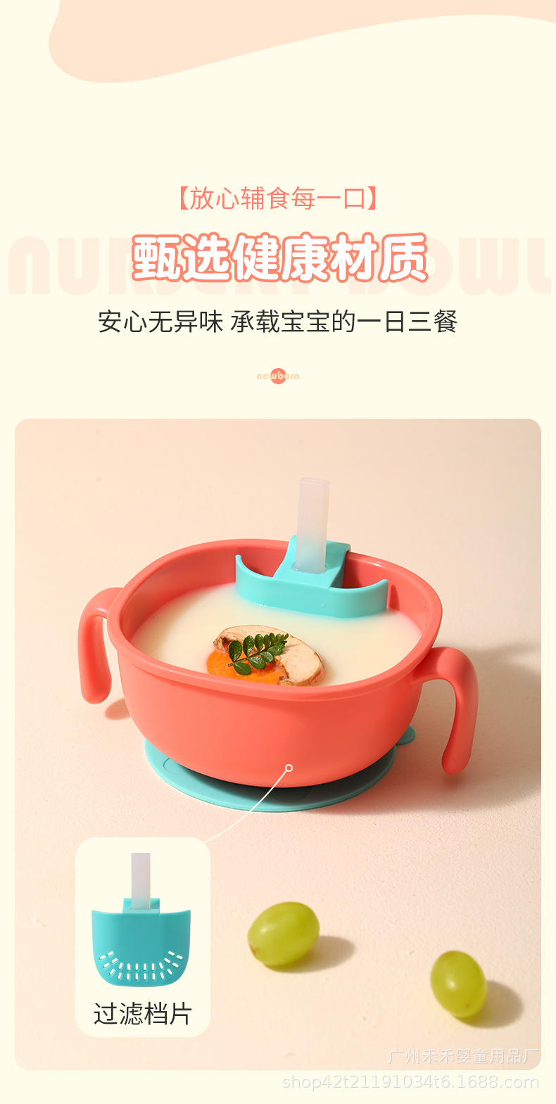 Nguồn Danh mục: Spot Thương hiệu: Hehe Baby Phong cách: Tươi tắn và dễ thương Danh mục sản phẩm: Bát Màu sắc: Xanh/Đỏ/Đỏ Chất liệu: Silicone/PP Độ tuổi sử dụng: Trên 6 tháng Có nhập khẩu hay không: Không