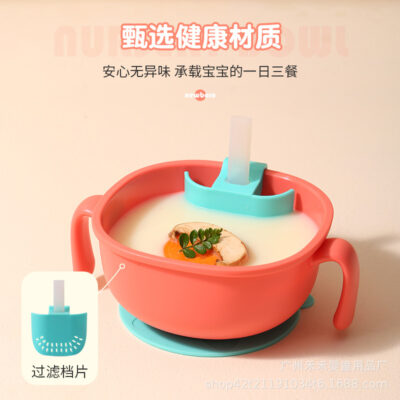 Bát ăn bổ sung cho trẻ em bát hút trẻ em bát silicone chống rơi 3 trong 1 bát uống súp bát ăn nhẹ bộ đồ ăn học tập cho bé cung cấp trực tiếp