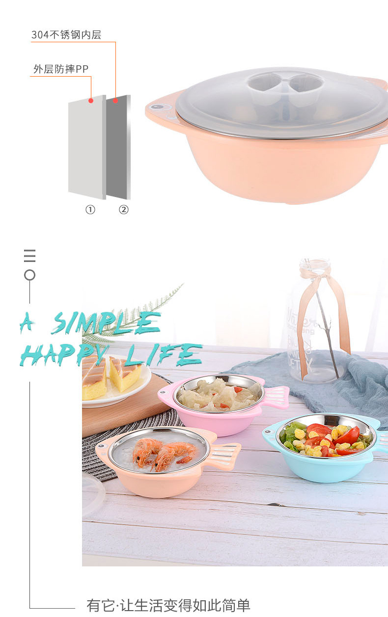 Bát ăn cho bé bằng thép không gỉ 304 có thể tháo rời chống rơi chống bỏng bát canh tay cầm ăn cho bé bộ đồ ăn hoạt động ưu đãi đặc biệt