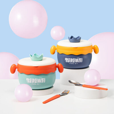 Bát bổ sung thức ăn cho bé bát cách nhiệt phun nước cho trẻ em Bộ đồ ăn trẻ em chống rơi chống bỏng bát hút bằng thép không gỉ cho trẻ em