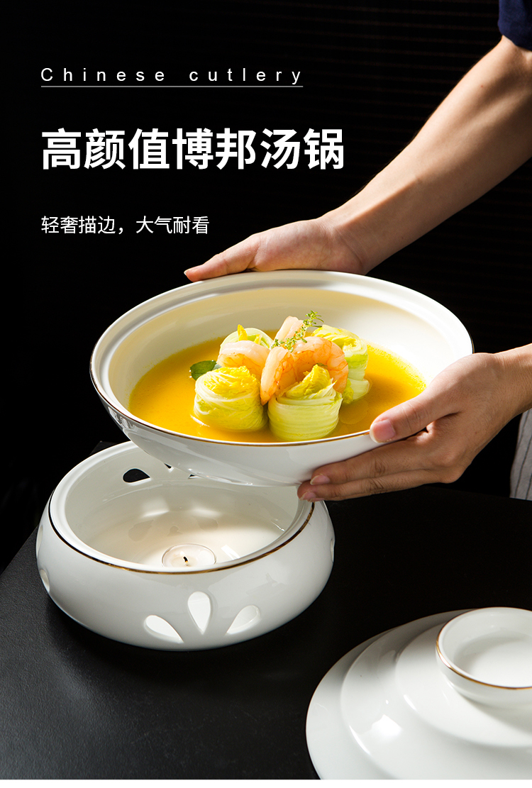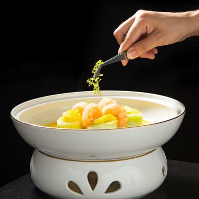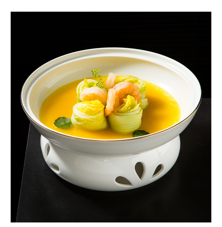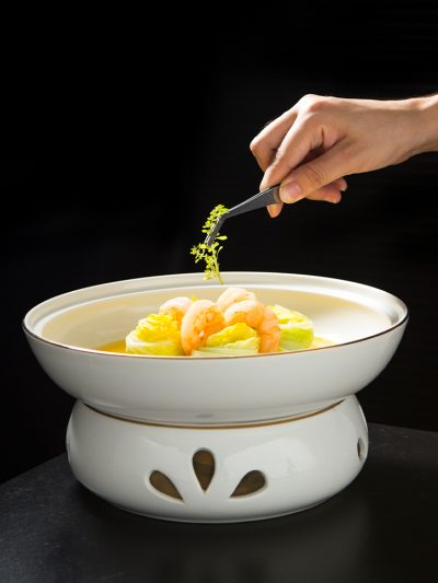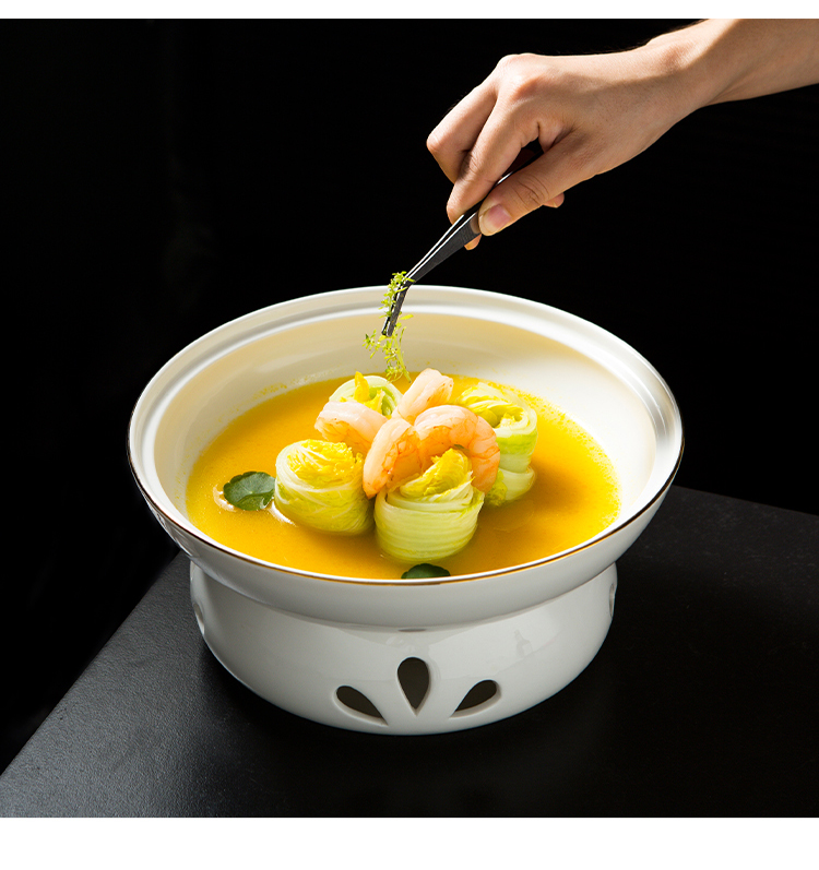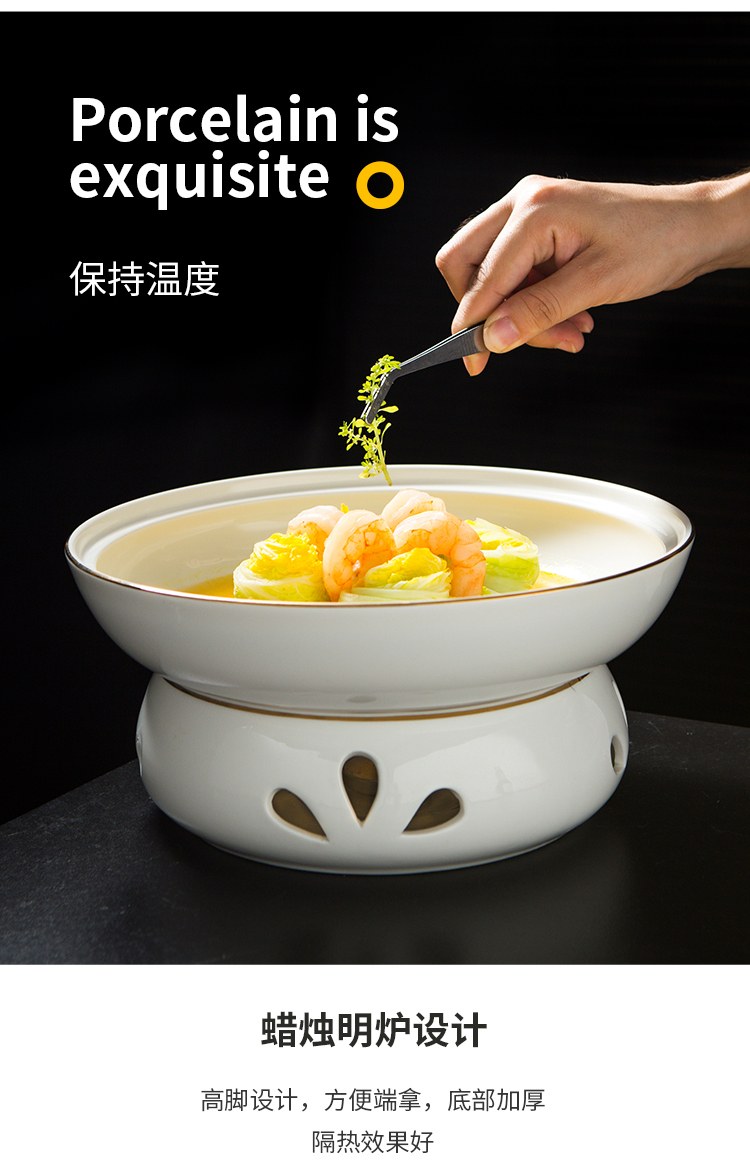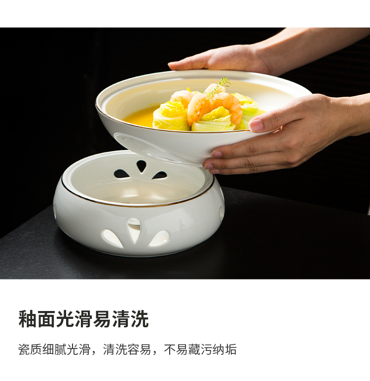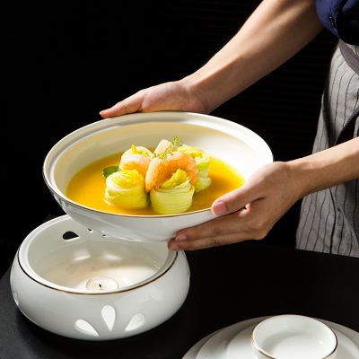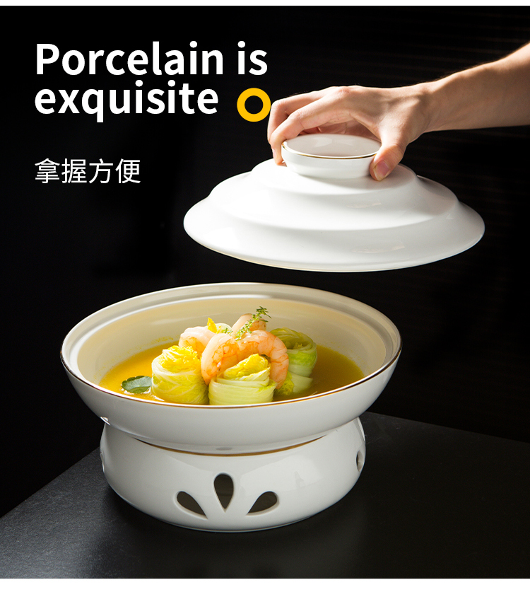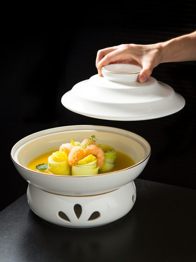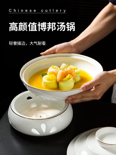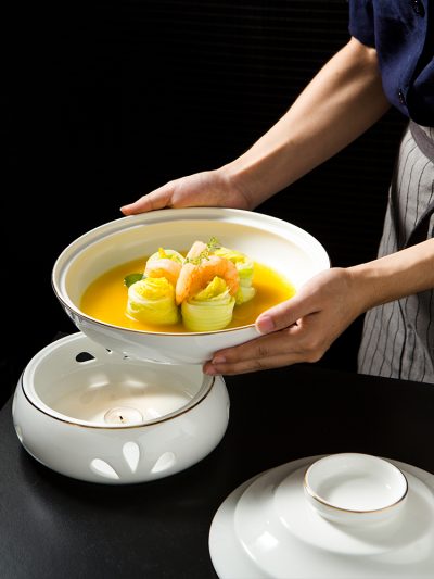 Bát kèm bếp đun nhỏ giữ nhiệt, bằng gốm sứ.