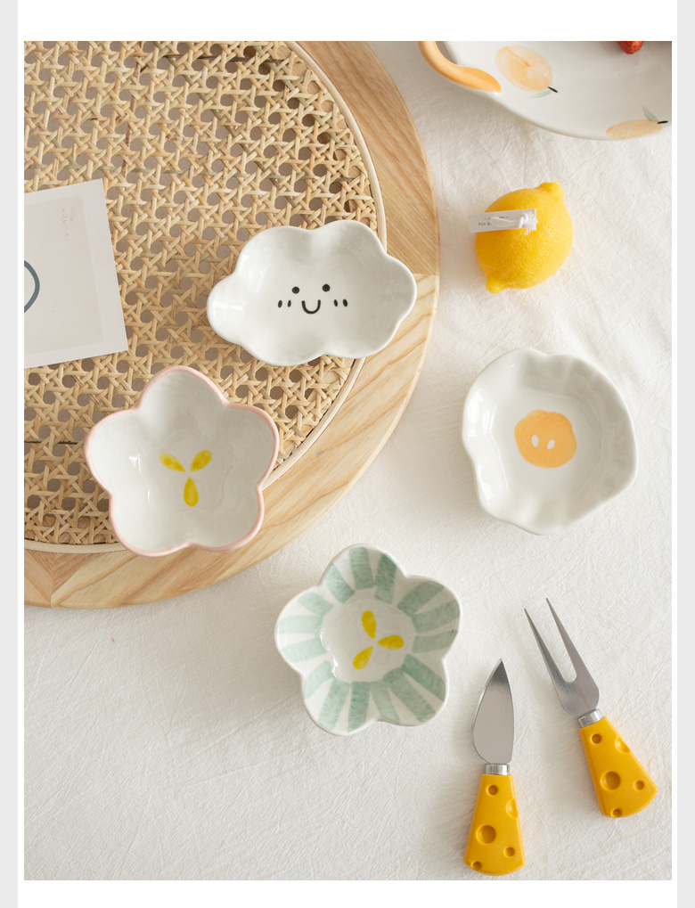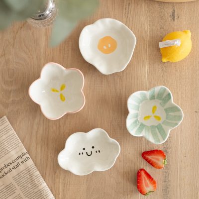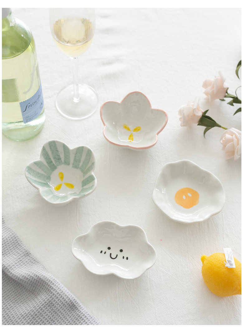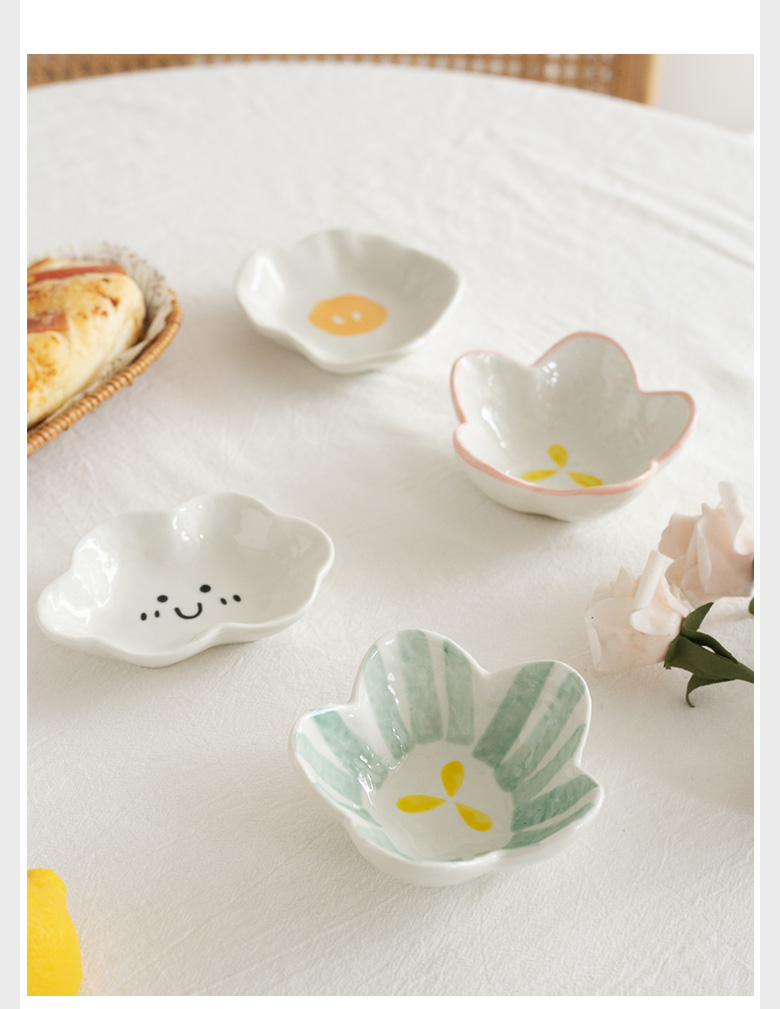 Bát nhỏ hình bông hoa bằng gốm sứ đựng gia vị, đồ ăn kèm.