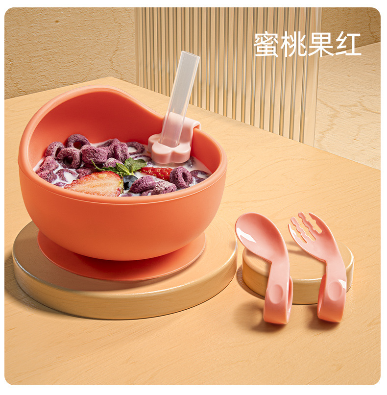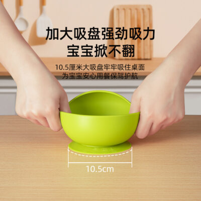 Bát tập ăn cho bé đặc biệt bổ sung bát tập thìa chống rơi chống bỏng trẻ em tự ăn bộ đồ ăn silicone giác hút bát