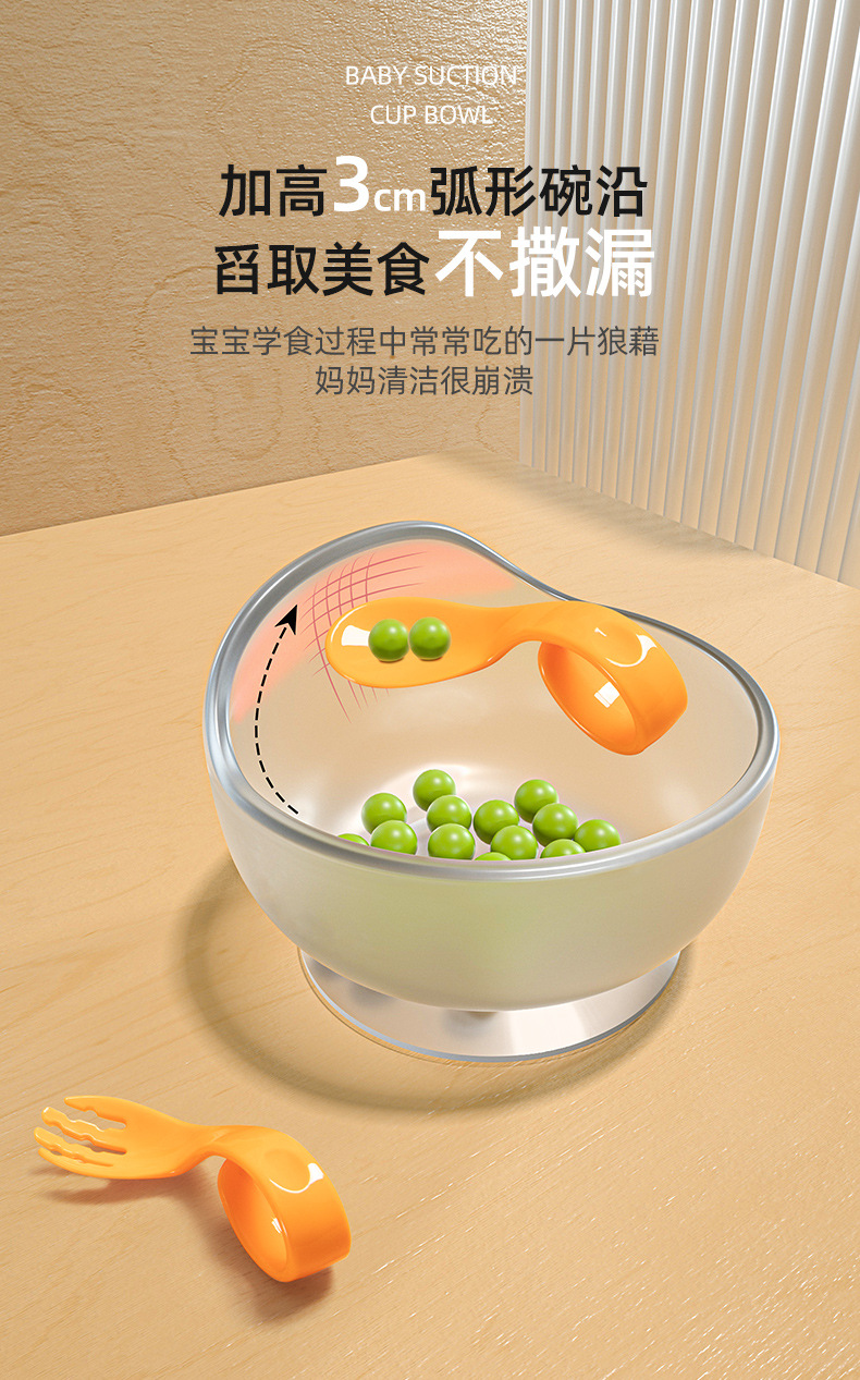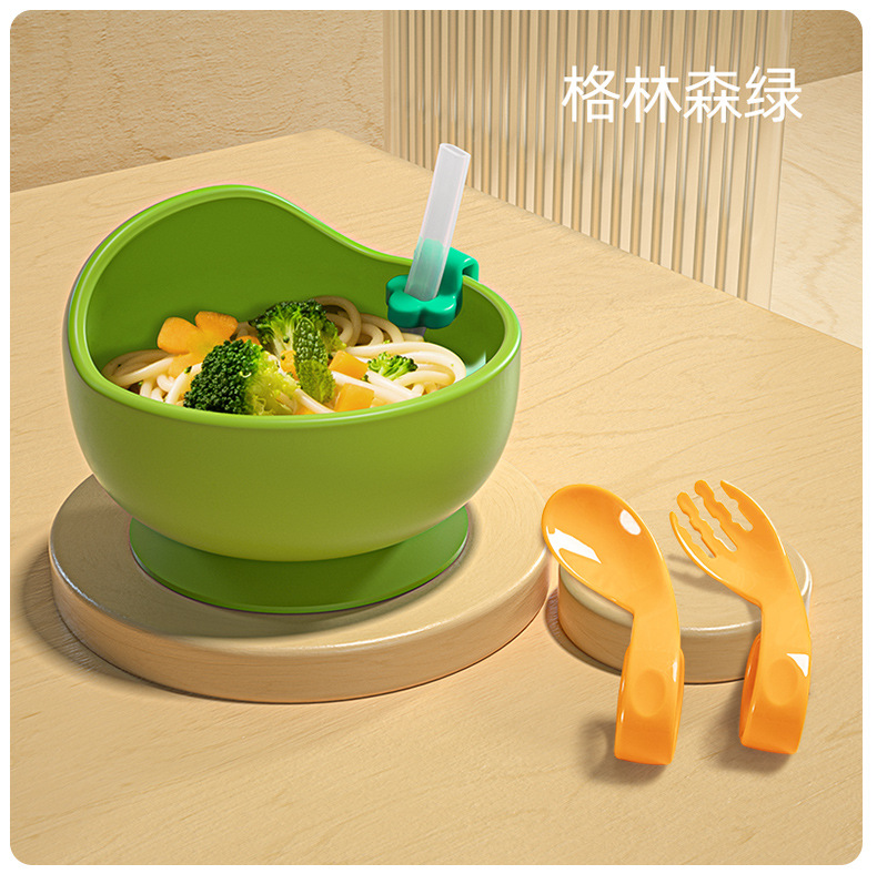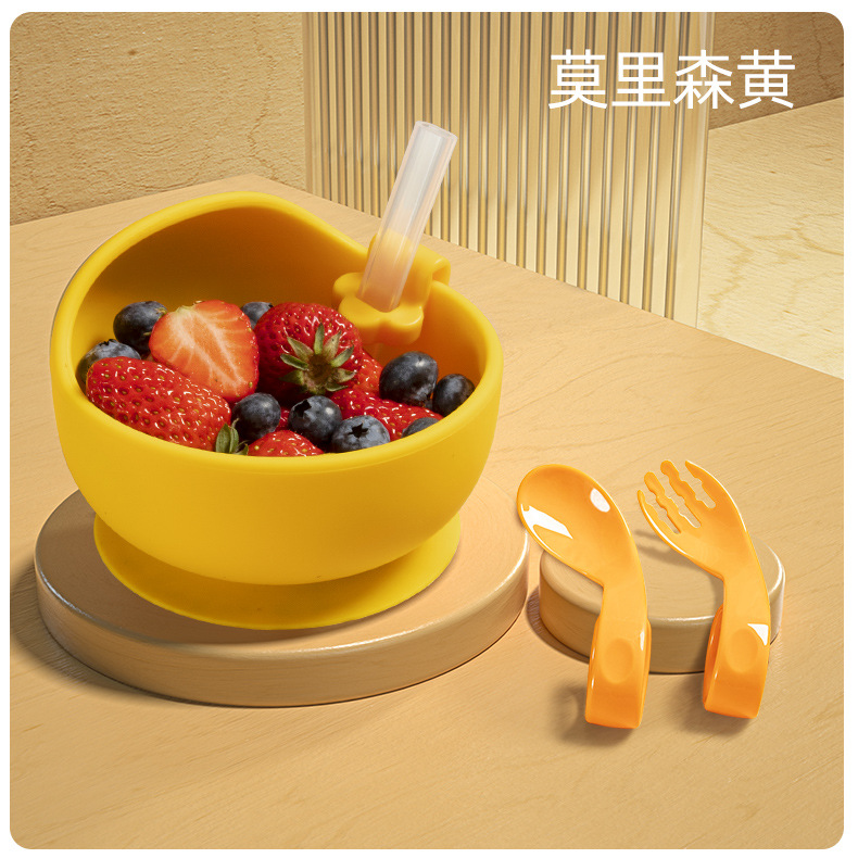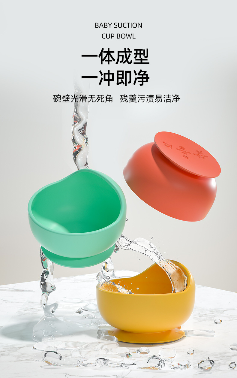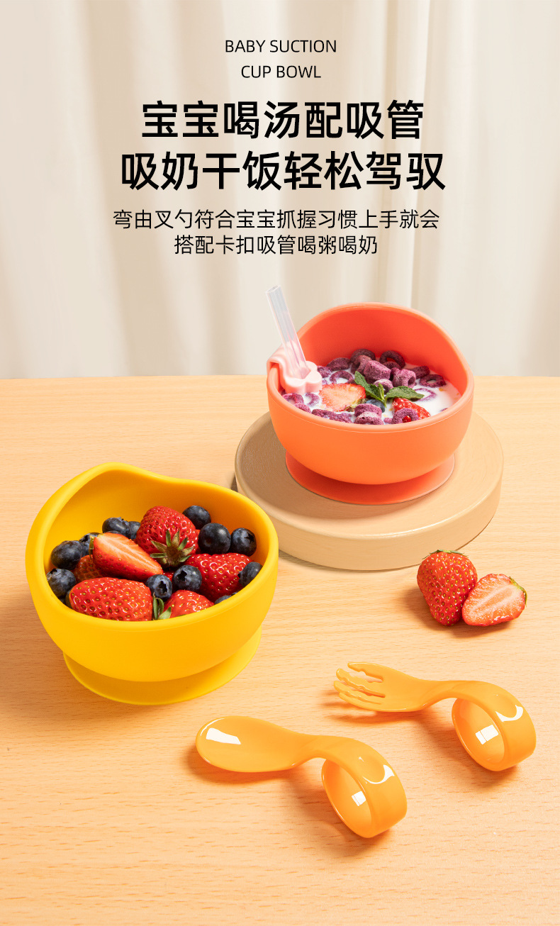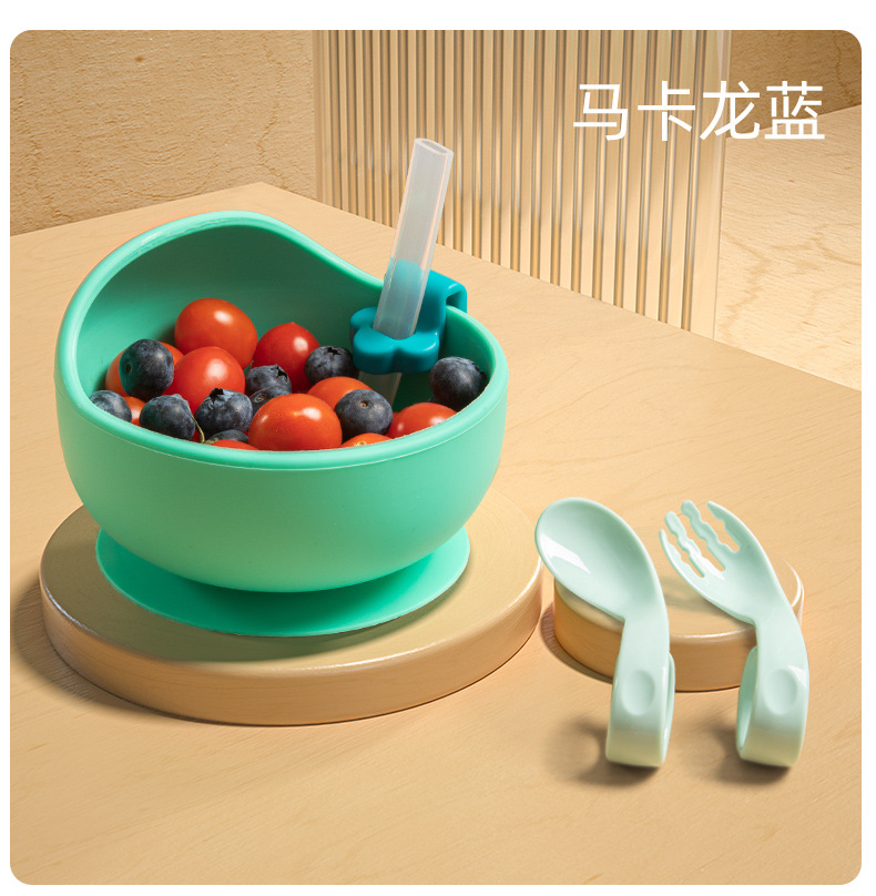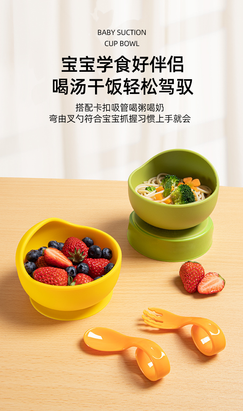 Bát tập ăn cho bé đặc biệt bổ sung bát tập thìa chống rơi chống bỏng trẻ em tự ăn bộ đồ ăn silicone giác hút bát