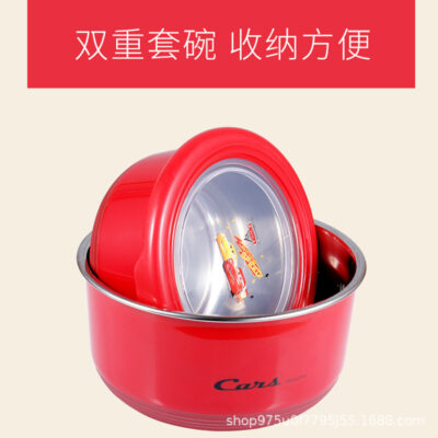 Bát trẻ em Disney Bộ đồ ăn bát inox có nắp bát cho bé nhà bé dễ thương chống rơi cho bé bát ăn
