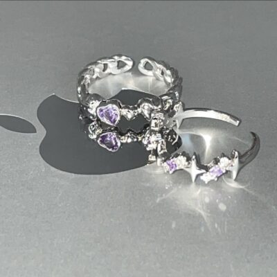 Bầu trời đầy sao ảo mộng Nhẫn kim cương màu tím tình yêu nữ niche Ins thủy triều ánh sáng sang trọng ngôi sao bốn cánh chỉ số nhẫn Nhẫn ngón trỏ ngọt ngào và mát mẻ