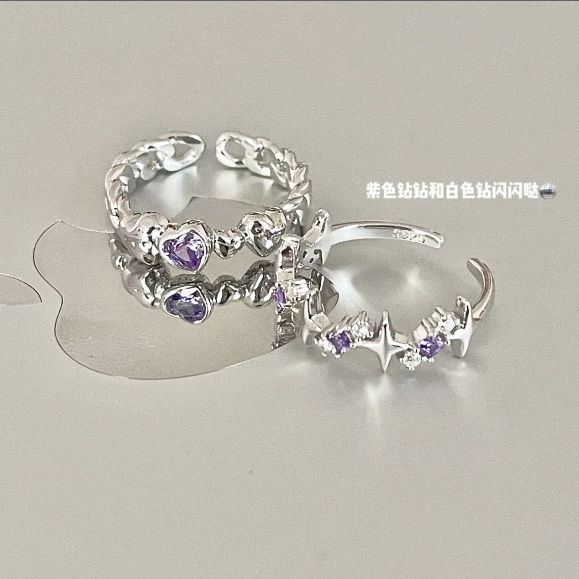 Bầu trời đầy sao ảo mộng Nhẫn kim cương màu tím tình yêu nữ niche Ins thủy triều ánh sáng sang trọng ngôi sao bốn cánh chỉ số nhẫn Nhẫn ngón trỏ ngọt ngào và mát mẻ