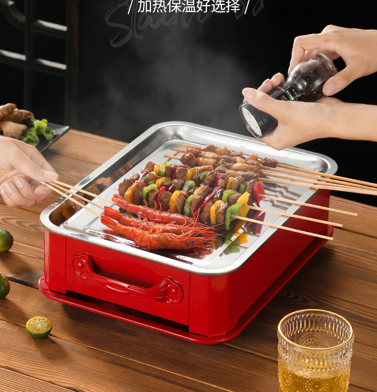 BBQ cách nhiệt bếp nóng xiên hiện vật nhà hàng nến sưởi ấm bếp thương mại xiên tấm thép không gỉ xiên tấm là thiết bị nằm trong danh mục Đồ nhà hàng > Bếp nướng, được thiết kế chuyên dụng cho các nhà hàng cần sự tiện nghi và chuyên nghiệp.