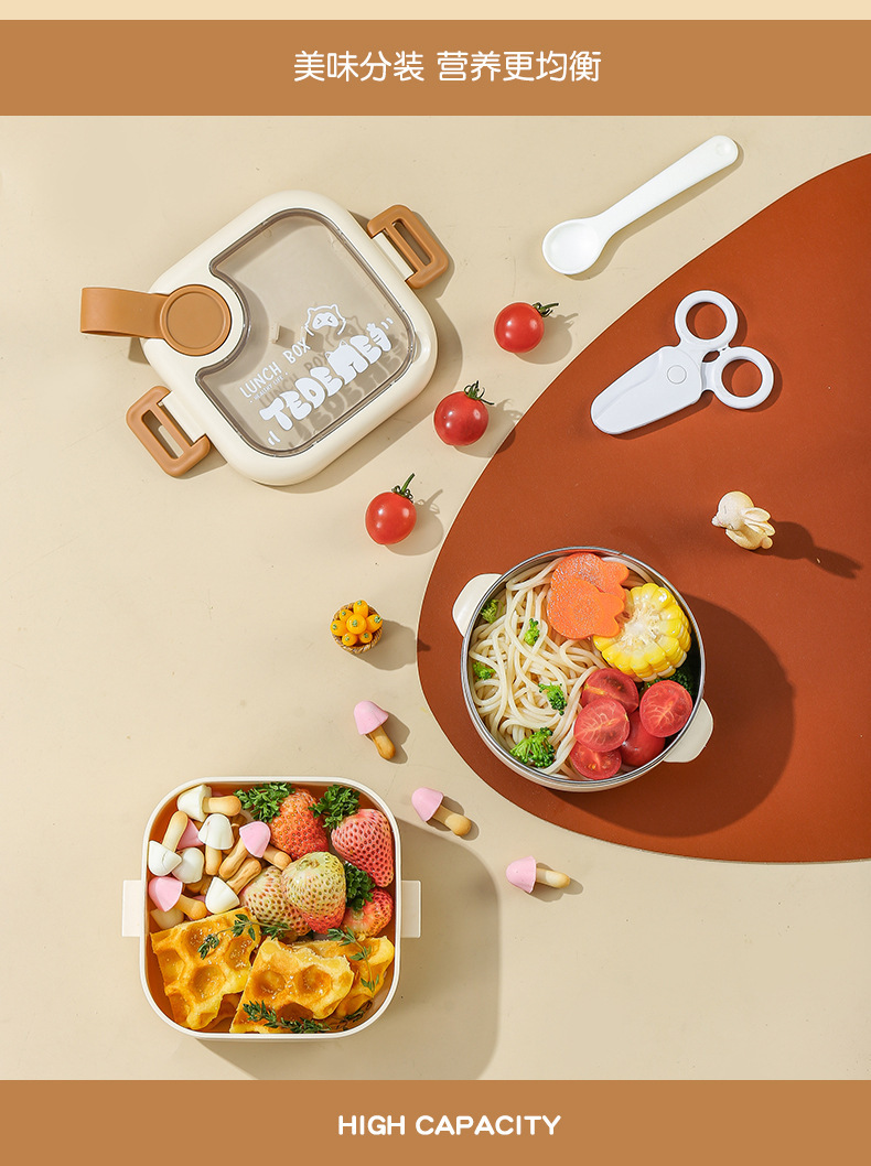 Bé Đi Ra Ngoài Thực Phẩm Bổ Sung Bát Trẻ Em Di Động Bộ Đồ Ăn Cho Bé Bát Thìa Bộ Hộp Đựng Cơm Inox Chống Rơi Takeaway