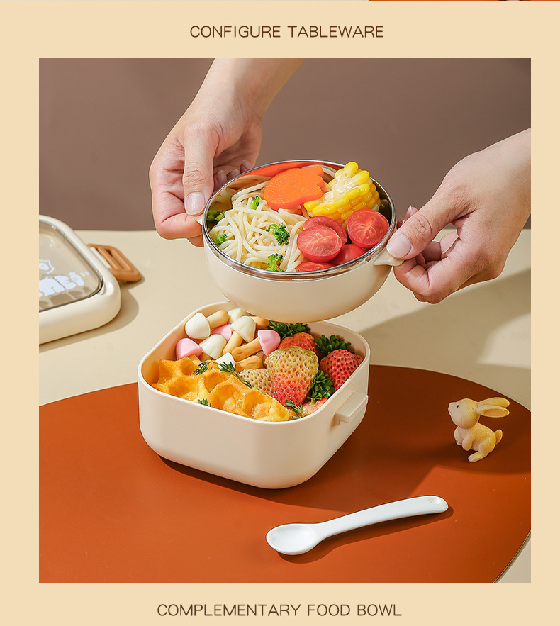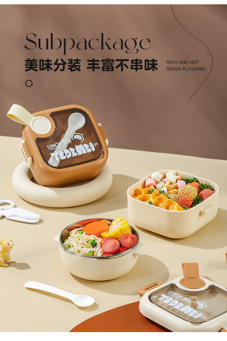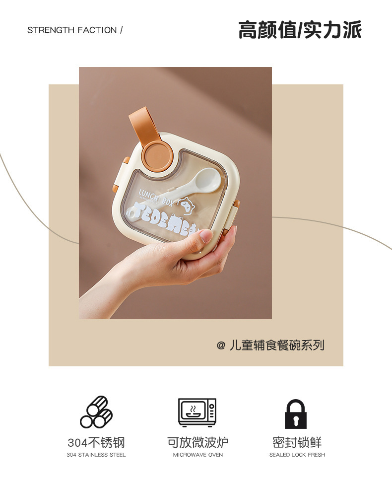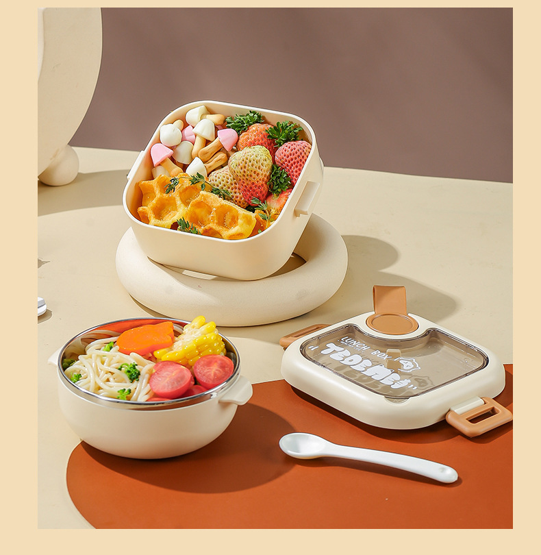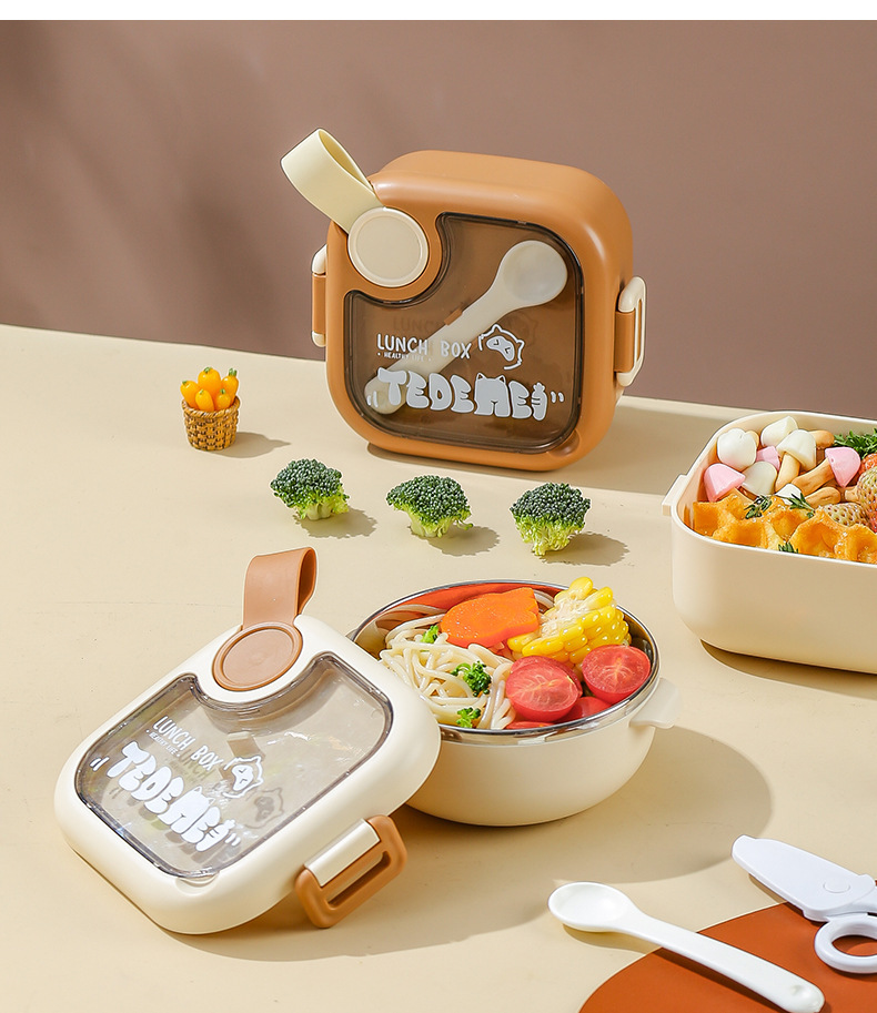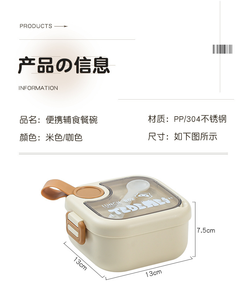 Bé Đi Ra Ngoài Thực Phẩm Bổ Sung Bát Trẻ Em Di Động Bộ Đồ Ăn Cho Bé Bát Thìa Bộ Hộp Đựng Cơm Inox Chống Rơi Takeaway