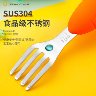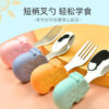 Bé mới tập thìa chống rơi cho bé tập ăn thìa tập ăn silicone tay cầm ngắn nĩa hoạt hình bộ đồ ăn trẻ em