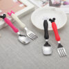 Bé tập ăn tập thìa cho bé bộ đồ ăn trẻ em thực phẩm bổ sung bằng thép không gỉ nhỏ silicone tay cầm ngắn bộ nĩa muỗng nĩa