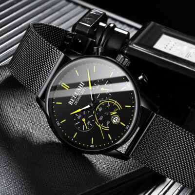 Beiluoshi Ngoại Thương Mới Chronograph Dạ Quang Thời Trang Chống Thấm Nước Dây Thép Đồng Hồ Thạch Anh Nam Đồng Hồ Bán Buôn