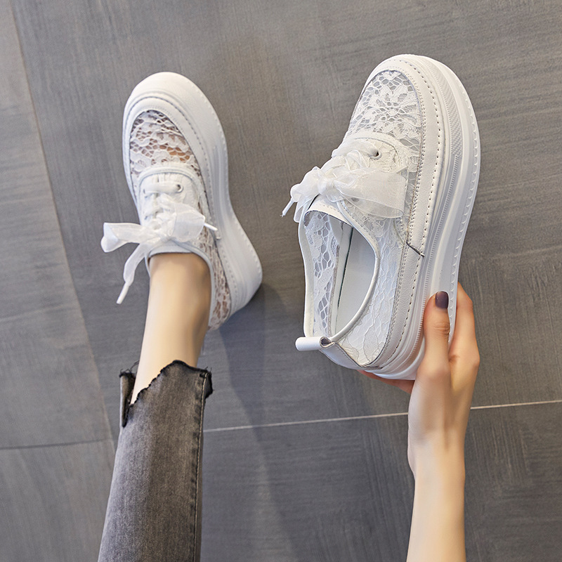 Bên trong giày nhỏ màu trắng tăng chiều cao cho nữ mùa hè mới phần mỏng ren lưới giày đơn có váy mặc giày nữ đế dày