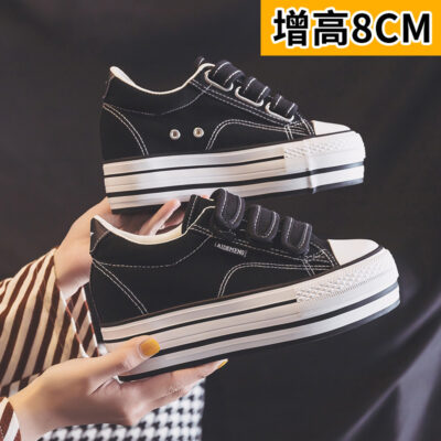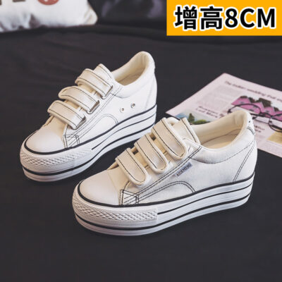 Bên Trong Tăng Chiều Cao 8 Cm Giày Nữ Mùa Thu 2023 Mới Đáy Dày Khóa Dán Phiên Bản Hàn Quốc Lười Học Sinh giày Trượt Băng