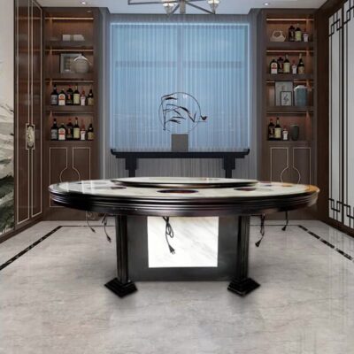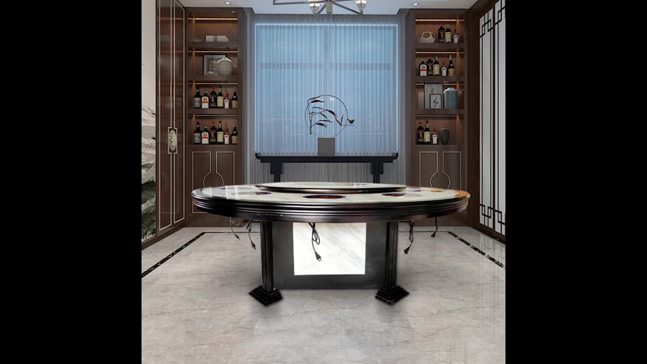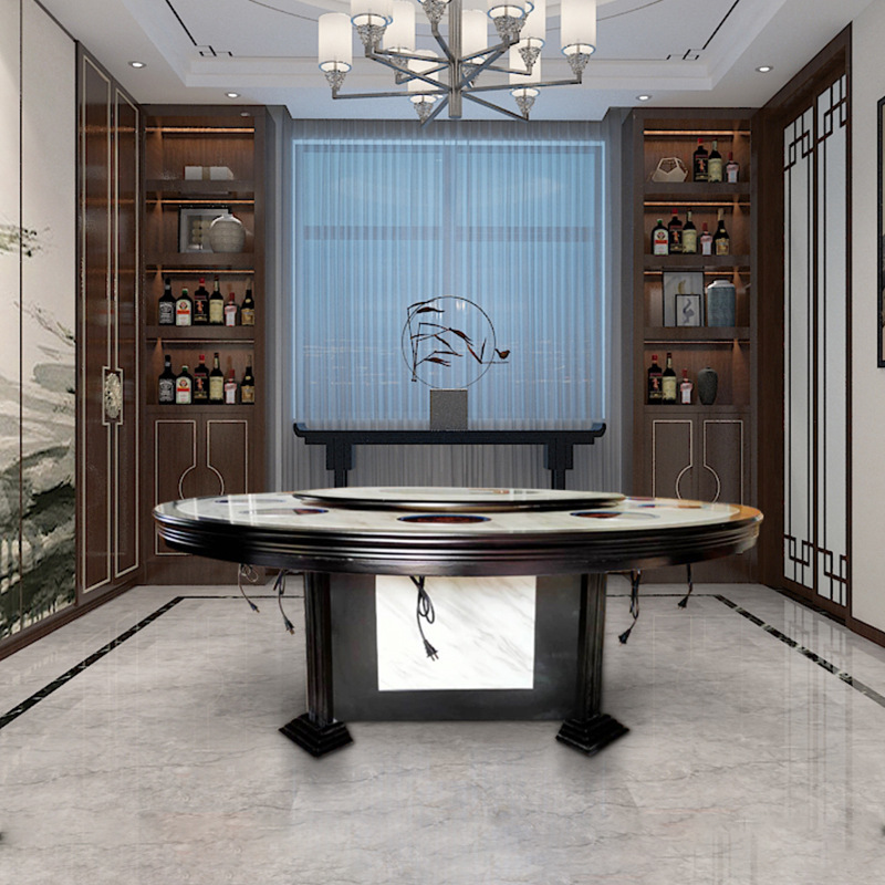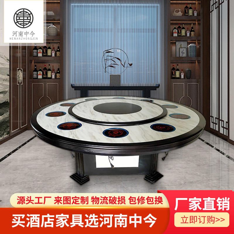 Bếp cảm ứng phong cách Trung Quốc mới bàn lẩu tùy chỉnh bàn ăn bằng đá cẩm thạch kết hợp bán buôn khách sạn xoay tự động khách sạn bàn tròn lớn