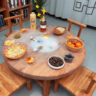 Bếp củi cũ đun nấu Bàn trà lưới Bàn trà đá đỏ bàn ghế khúc gỗ bàn nướng gỗ đặc Bàn trà đá mùa xuân homestay bàn tròn nhỏ