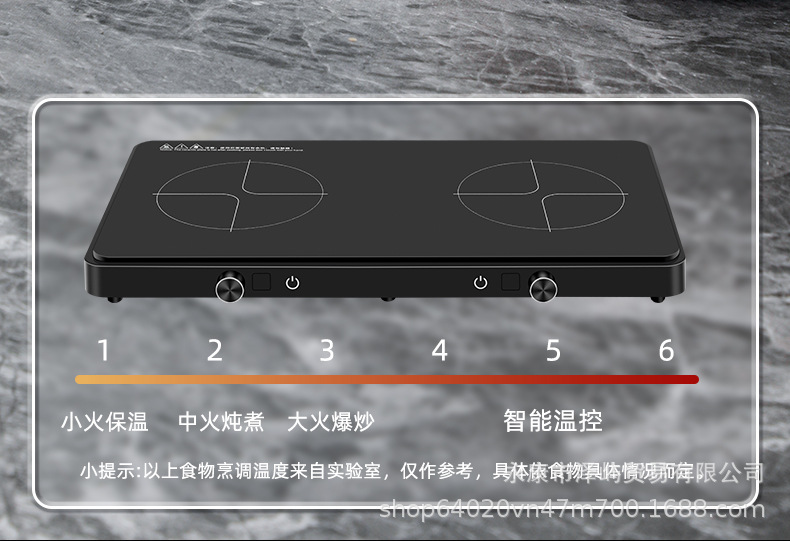 Thương hiệu: Xiaoxin Mã sản phẩm: K001 Số chứng nhận 3C: 2014010712694553 Công suất: 1000W trở lên Thông số kỹ thuật sản phẩm: Bếp điện từ 2800W/Bếp điện từ 3600W/Bếp điện từ 2800W+Chảo nướng đen Obsidian/Bếp điện từ 3600W+Chảo nướng đen Obsidian/Bếp điện từ 2800W+Chảo nướng màu đá Medifan/Bếp điện từ 3600W+Chảo nướng màu đá Maifan/Bếp từ 3600W+Chảo nướng màu đá Maifan Danh mục sản phẩm: Bếp điện từ có dùng cho Ngoại thương hay không: Không Loại bảng điều khiển: Bảng điều khiển vi tinh thể màu đen Trọng lượng: 3.6KG Chức năng: Lẩu/Súp/Rau xào/Hấp/Nấu cháo/Xào/Hầm sữa/Nước sôi/Chiên/Chiên Điện áp định mức: 220V Chất liệu tấm: Tấm vi tinh thể