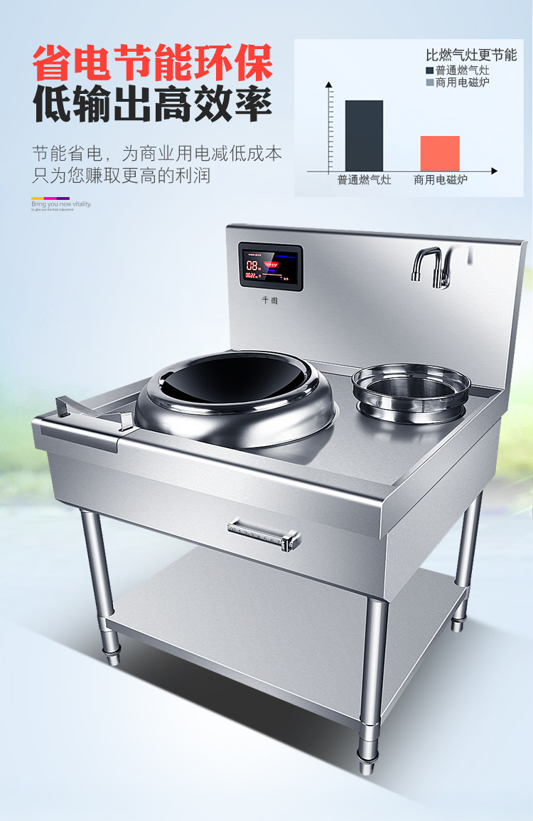 Bếp điện từ thương mại công suất cao Qiantu bếp điện từ lõm 15kw bếp chiên nhúng một đầu nhỏ thiết bị nhà bếp bếp từ