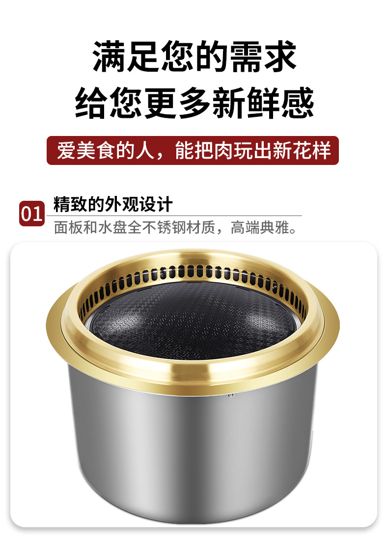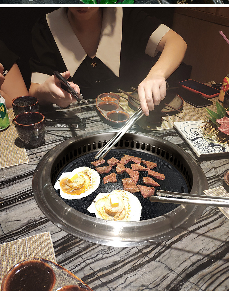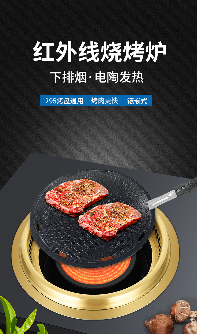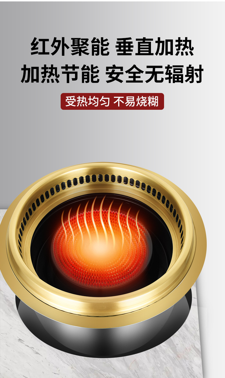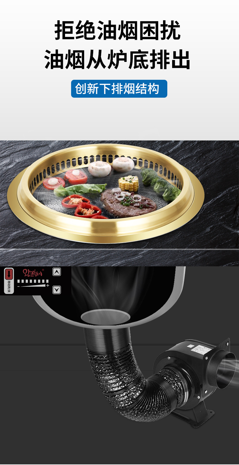 韩式电烤炉商用下排烟圆形铸铁电烧烤炉自助餐店专用无烟电烤肉炉